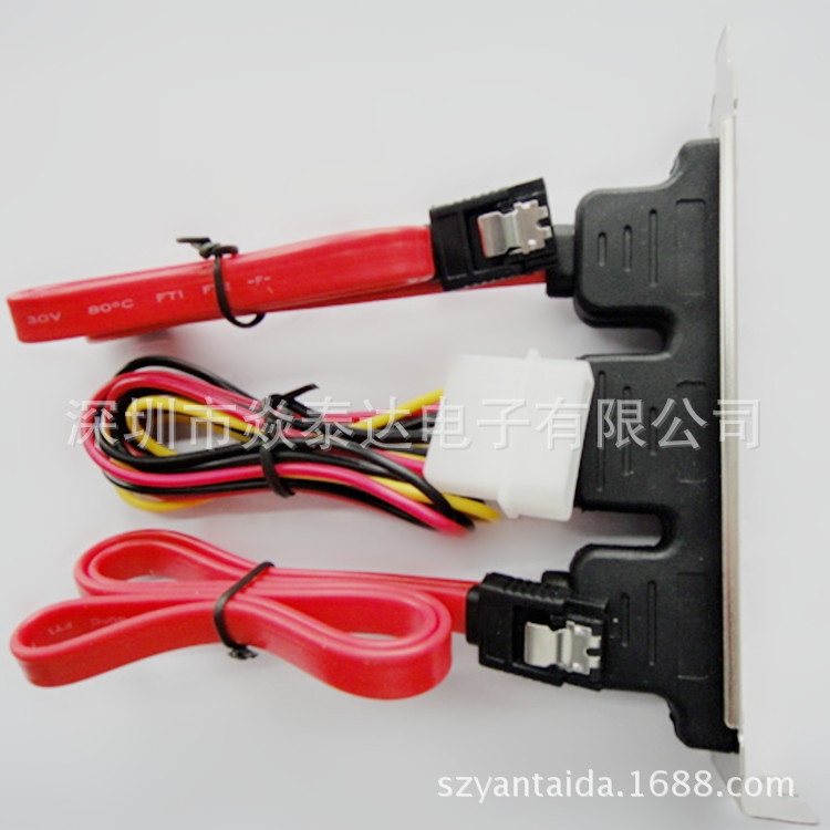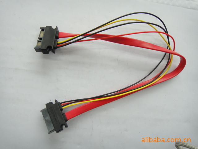 3. 7+15pin连体公头,直插SATA硬盘,另一头SATA2代数据线长约40CM,方便您插主板,再外加大四P,IDE电源口