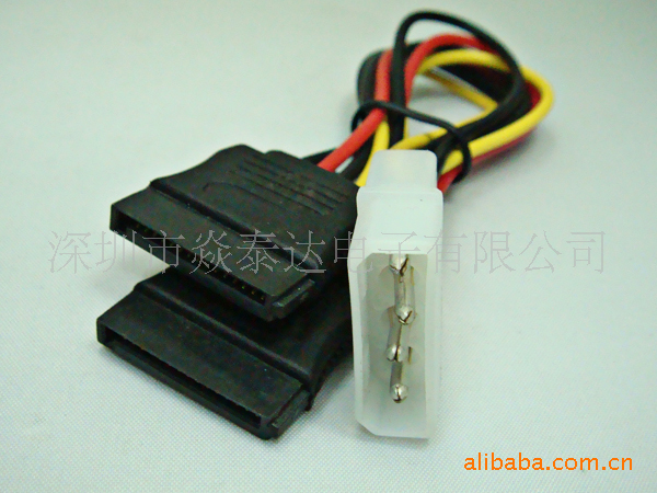 3. 7+15pin连体公头,直插SATA硬盘,另一头SATA2代数据线长约40CM,方便您插主板,再外加大四P,IDE电源口