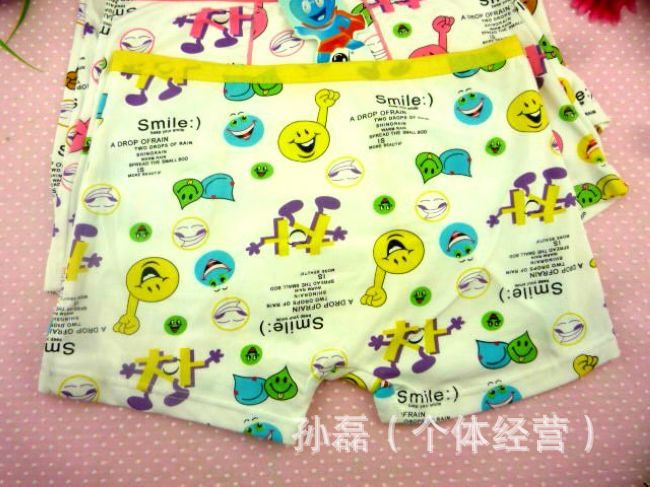 各位新老顾客此内裤都是一包10条装,一包一个码5个颜色如上图,最低可以拿一包10条,或者10的倍数。本款是奥代尔棉卡通笑脸图案229