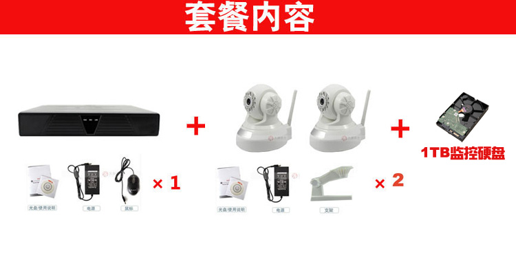 2路无线百万高清监控套装,带1000G希捷专业监控硬盘,24小时不停机录像,无线监控,免布线,让监控来的更简单!