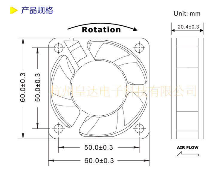 风扇尺寸:(长×宽×厚度) 60MM×60MM×20MM