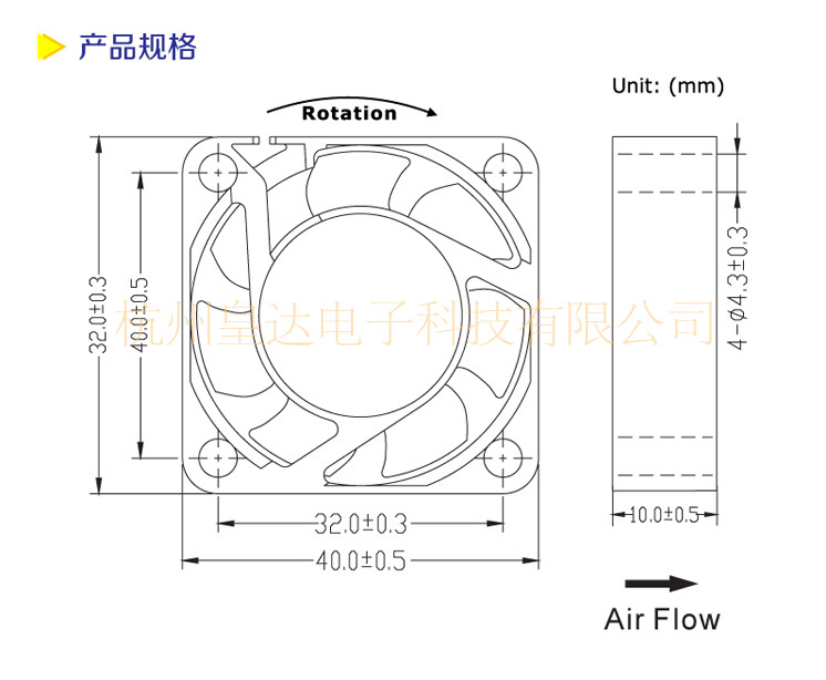 风扇尺寸:(长×宽×厚度) 40MM×40MM×10MM
