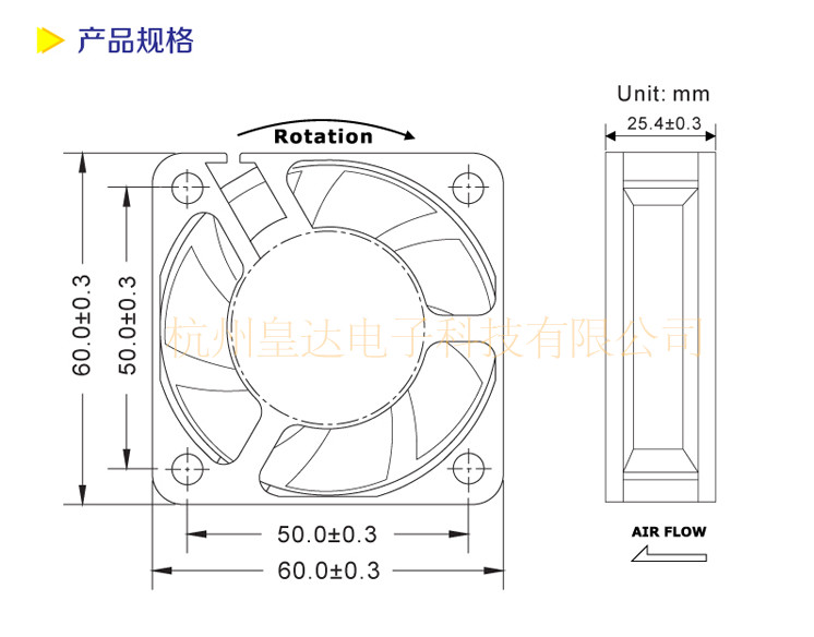 风扇尺寸:(长×宽×厚度) 60MM×60MM×25MM