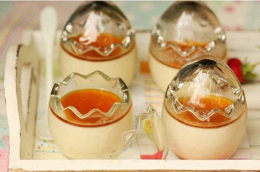 “蛋壳”的壁挺厚实的,导热更为均匀,与普通的玻璃小奶瓶比较,能烤出更为滑嫩的布丁来,让小朋友从此爱上吃“鸡蛋”~~~