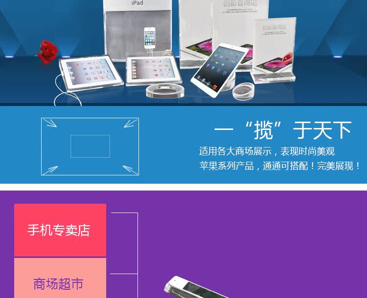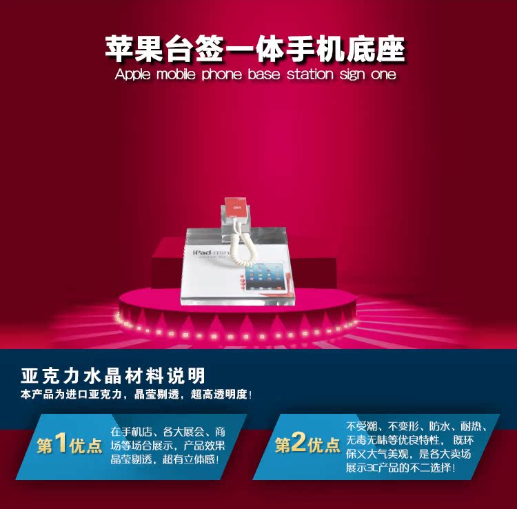 手机展示架透明亚克力托盘底座多路苹果防盗iphone6水晶架i-06