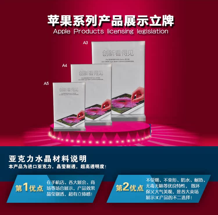 苹果手机数码双面a4台签酒水牌透明亚克力展示批发包邮