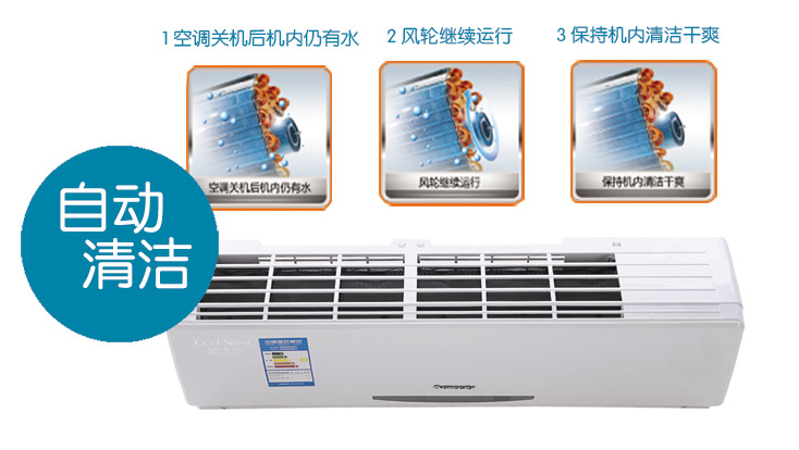 格力空调采用新一代的亲水铝箔,在制冷或抽湿的模式下,快速流动的冷凝水将蒸发器上的灰尘带走,关机后风机继续运转进行风干,从而实现自动清洁、自动干燥。