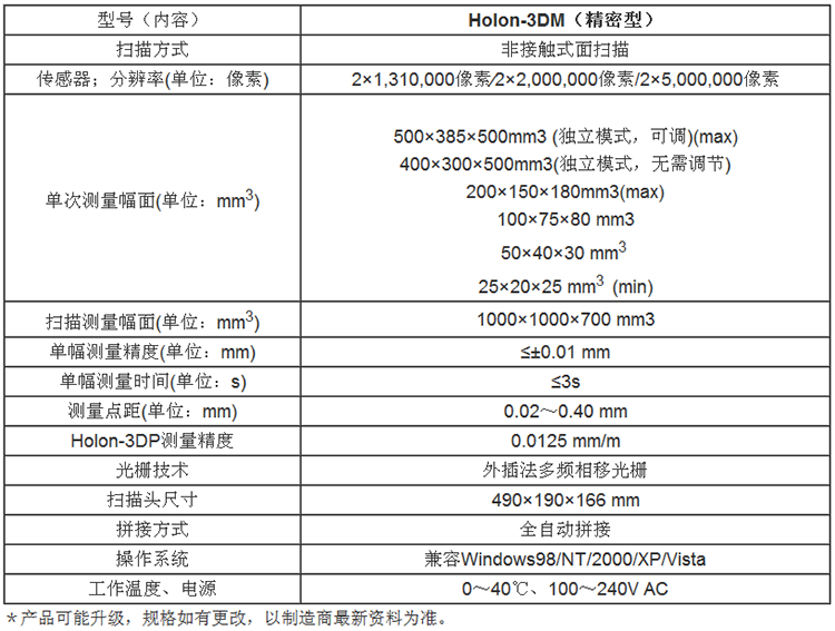 高精度三维扫描仪(Holon-3DM)采用进口镜头、进口工业相机、稳定的光栅芯片,具有 :
