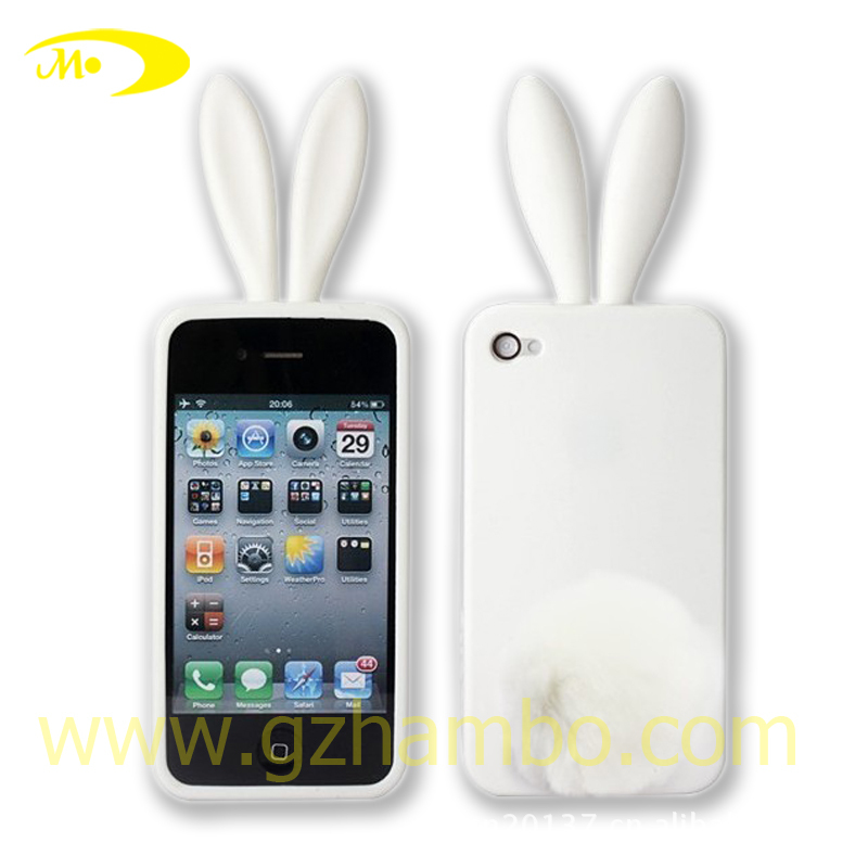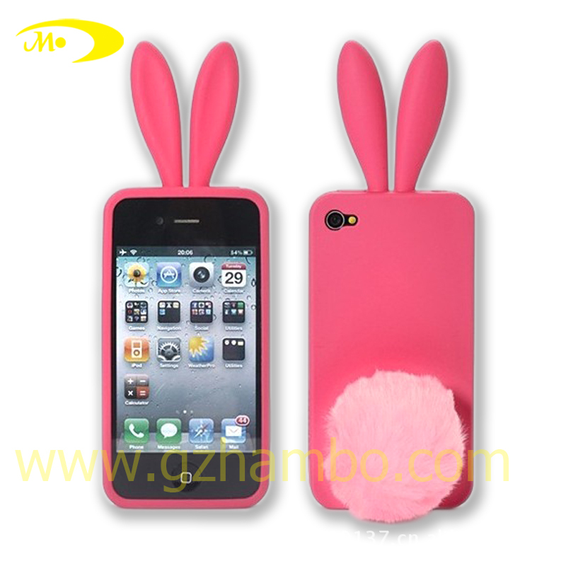 一句概括 | 可爱兔子耳朵手机壳 毛球手机套 新款硅胶苹果iphone4/4S手机壳 |