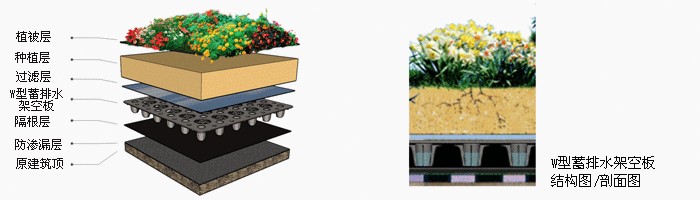 2.屋顶绿化和室外车库顶板绿化可配多孔渗水管使用,这样能把排水板中排出的水集中排到附近