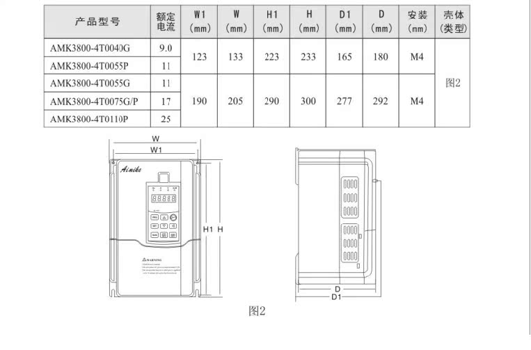 | | 品 牌 | 艾米克 | | 产品名称 | 5.5KW通用变频器 | | 型 号 | AMK3800-4T0055G | | 功 率 | 5.5KW | | 电 压 | 三相380V | | 输出电流 | 11A | | 适配电机 | 5.5KW | | 产品规格 | 内宽W1:123mm 外宽W:133mm 内高H1:223mm外高H:233mm 内厚D1:165mm 外厚D:180mmprefix = o |