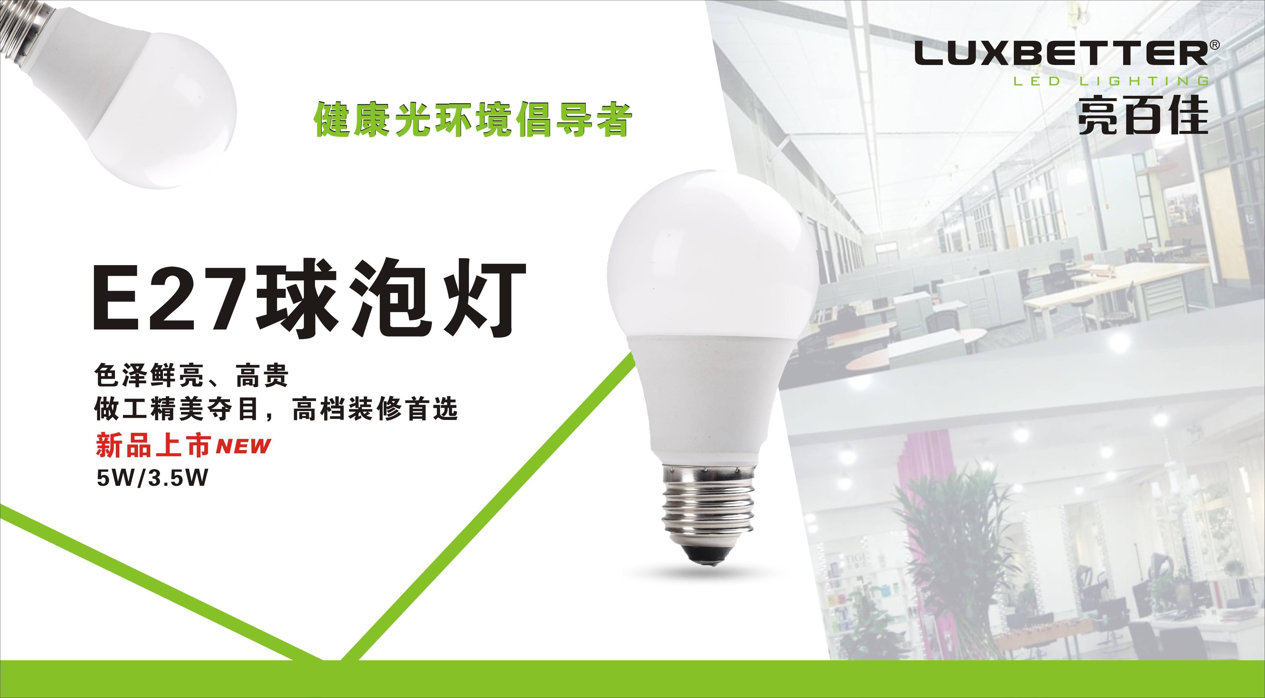 LED球泡灯采用了现有的接口方式,即螺口、插口方式(E26\E27\E14\B22等),甚至为了符合人们的使用习惯模仿了白炽灯泡的外形,亮百佳LED使用的是E27灯头。