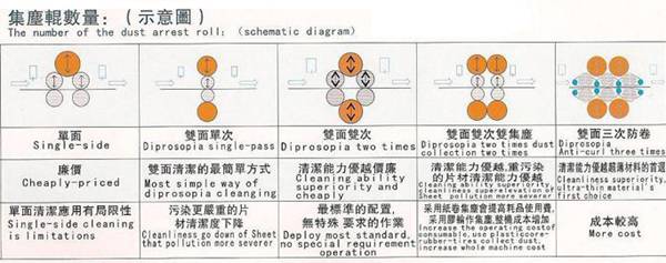 软性电路板、铜箔基板、聚亚醯胺薄膜、薄膜按键、陶瓷基板、底片与各种厚度的基板在暴光、印刷、贴、压合、钻孔、分条、裁切、检查等作业的板面清洁。
