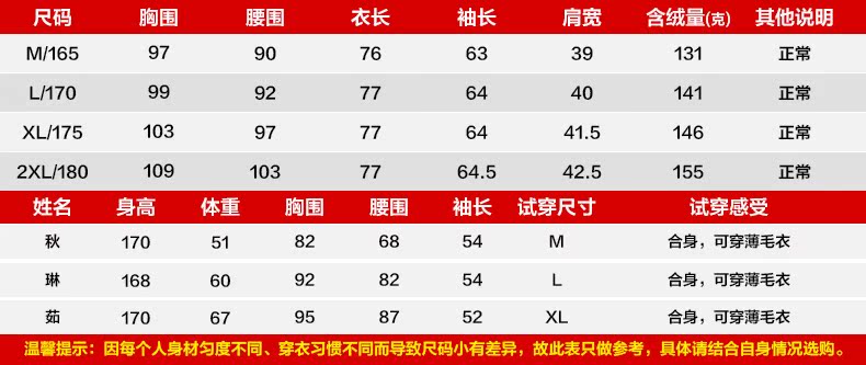 - 尺码: S/160 M/165 L/170 XXL/180 XL/1