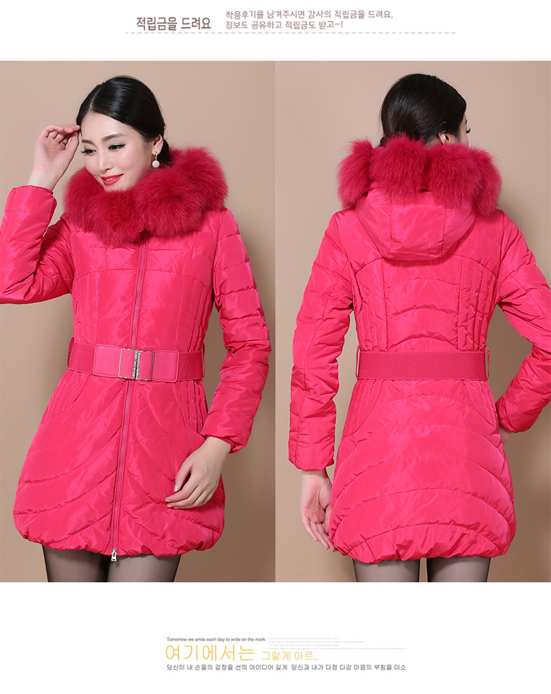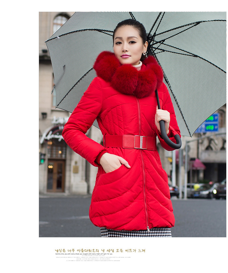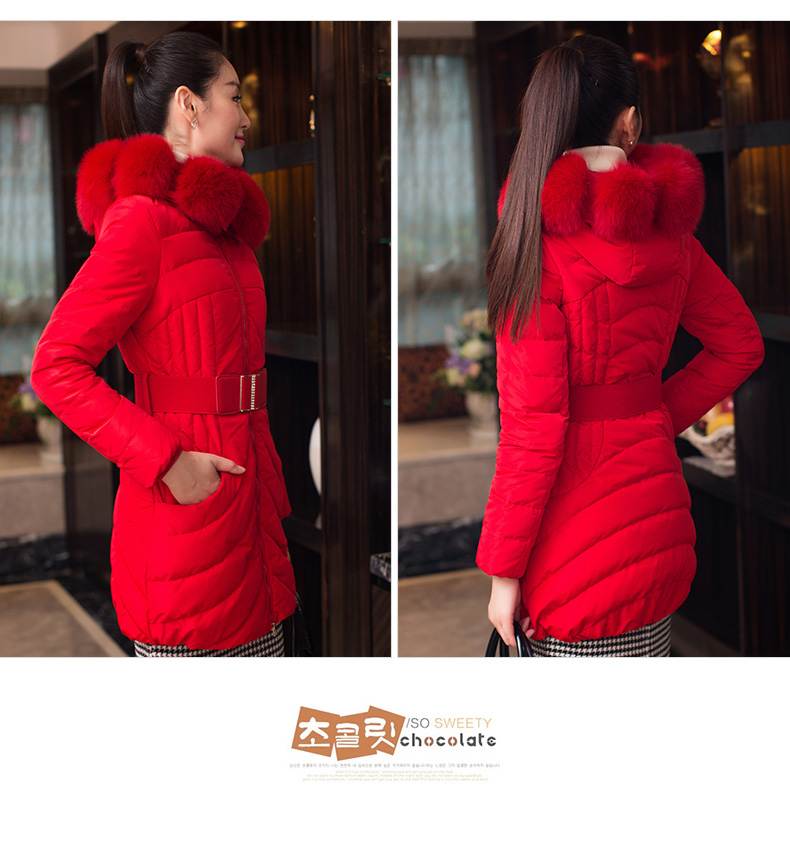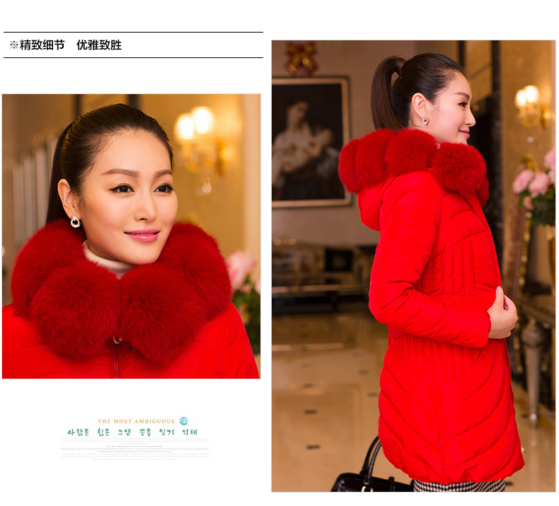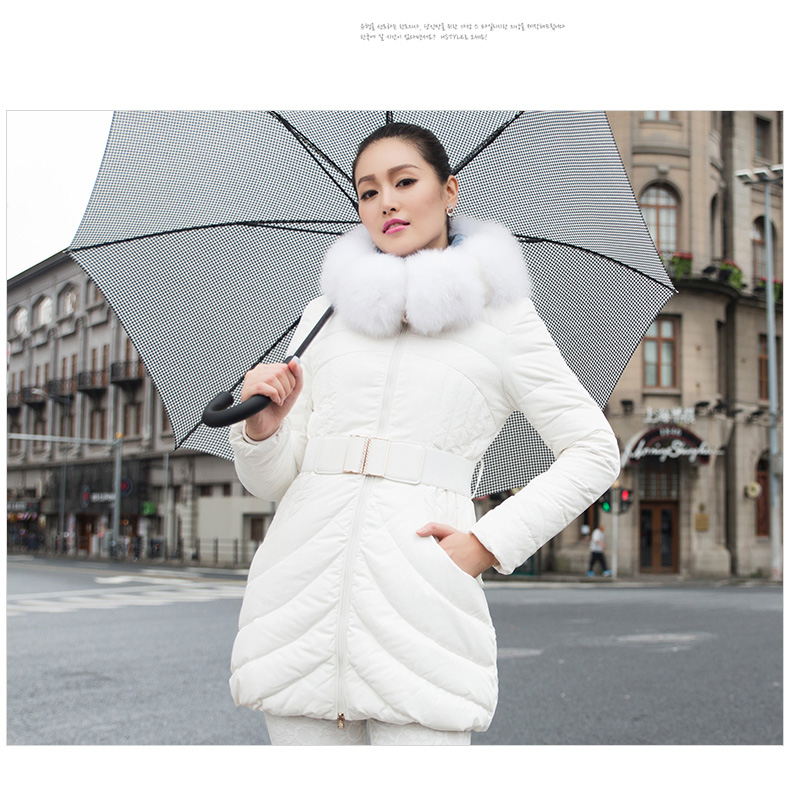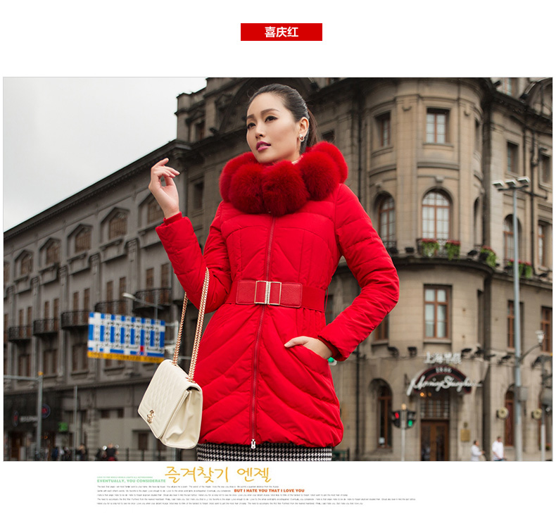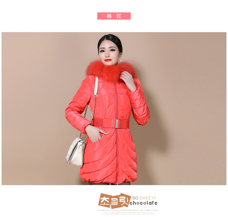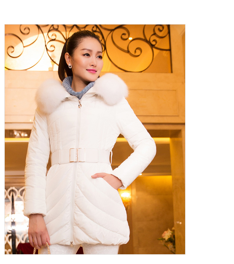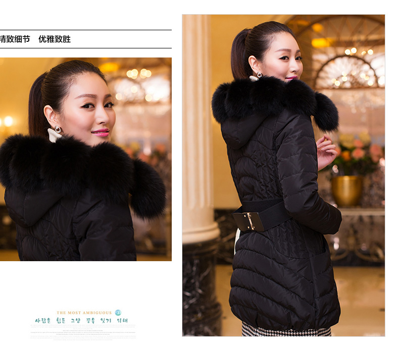 千仞岗2014冬季修身常规甜美毛领新款连帽女羽绒服q1861