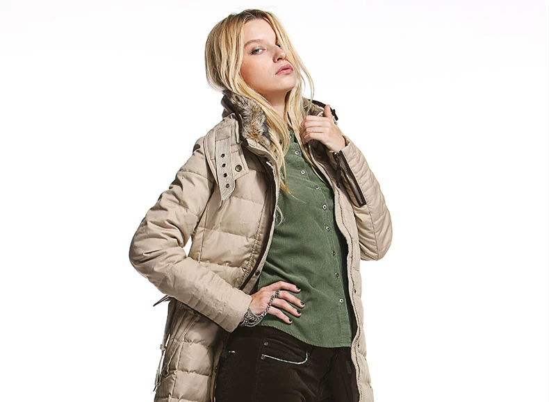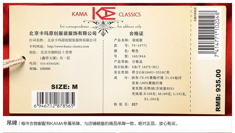 卡玛 2014冬装新品美式休闲长袖立领纯色女士羽绒服7414771