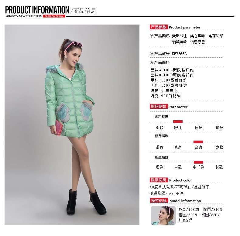 歌雷蒙2014冬装新款时尚韩版中长款羽绒服 8150545218