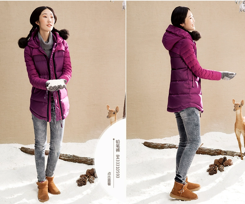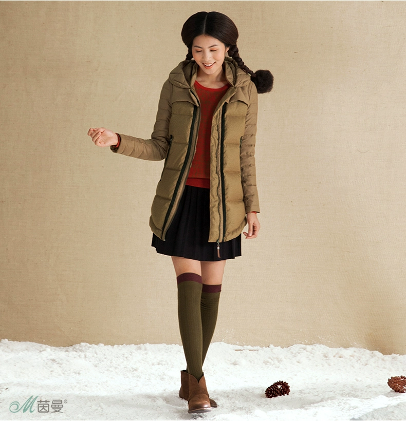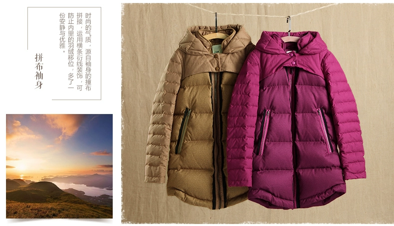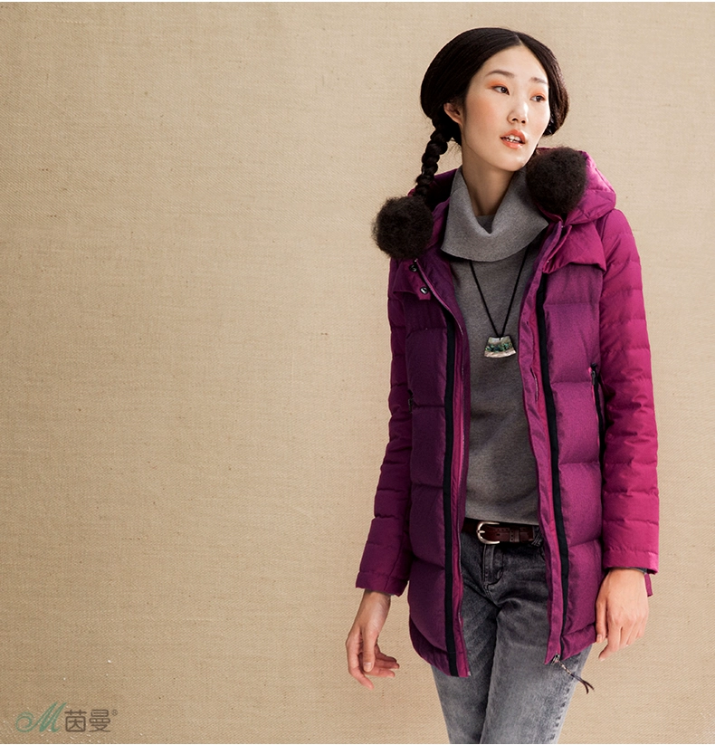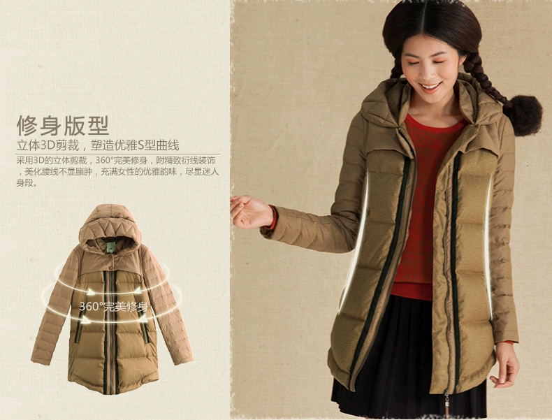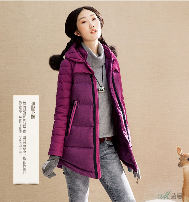 茵曼2014新款女士羽绒服连帽加厚保暖中长款羽绒服8441210131