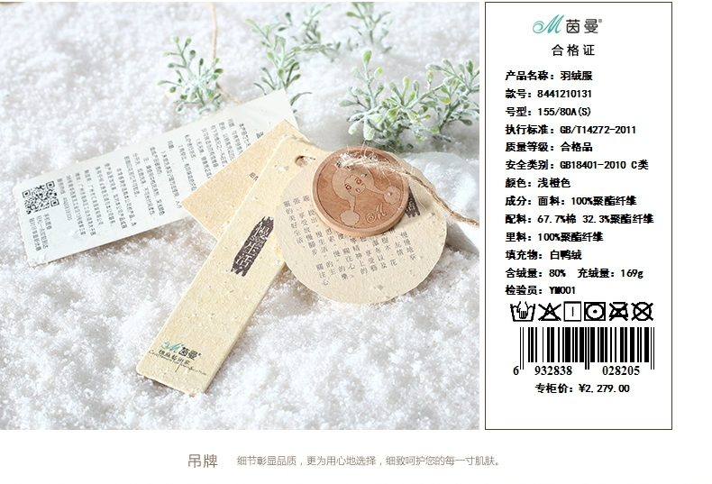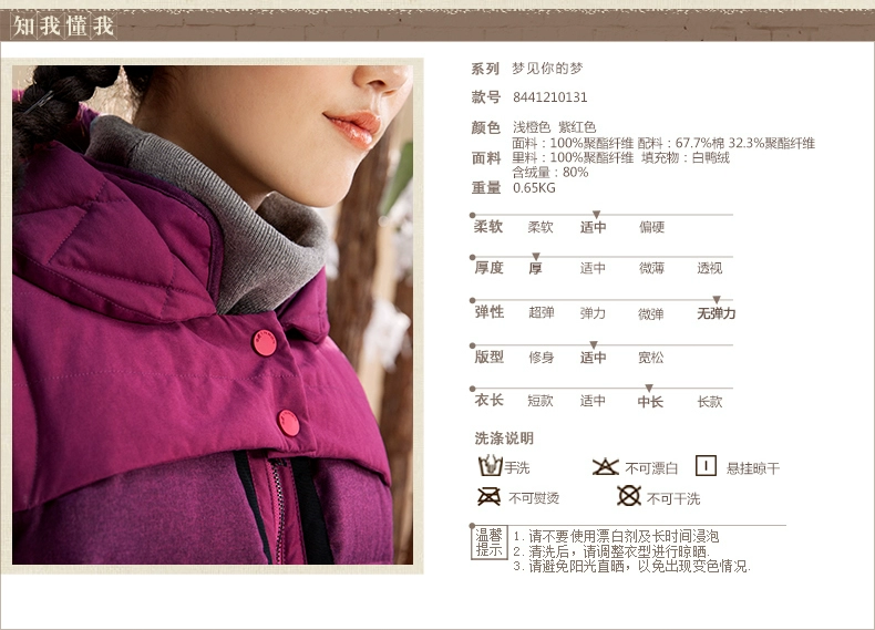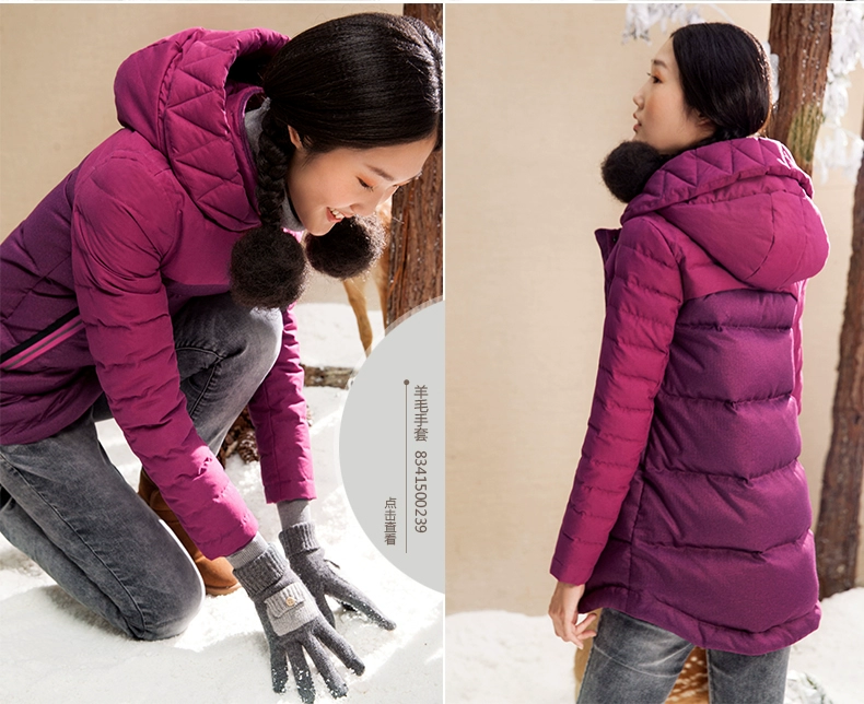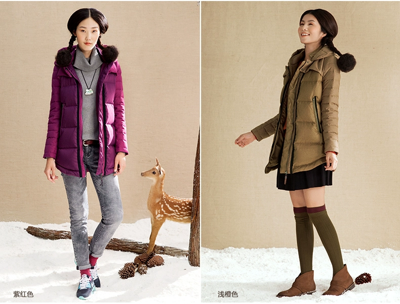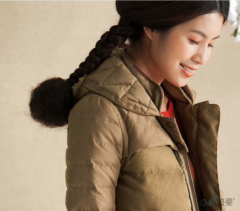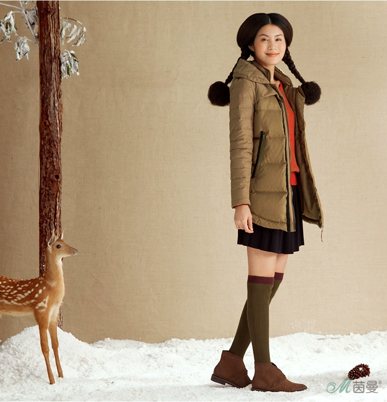 茵曼2014新款女士羽绒服连帽加厚保暖中长款羽绒服8441210131