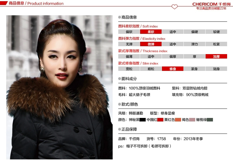 千仞岗女装韩版修身奢华羽绒服女士中长款连帽2014潮冬装加厚大码