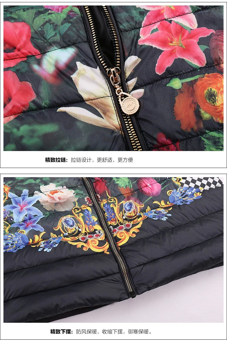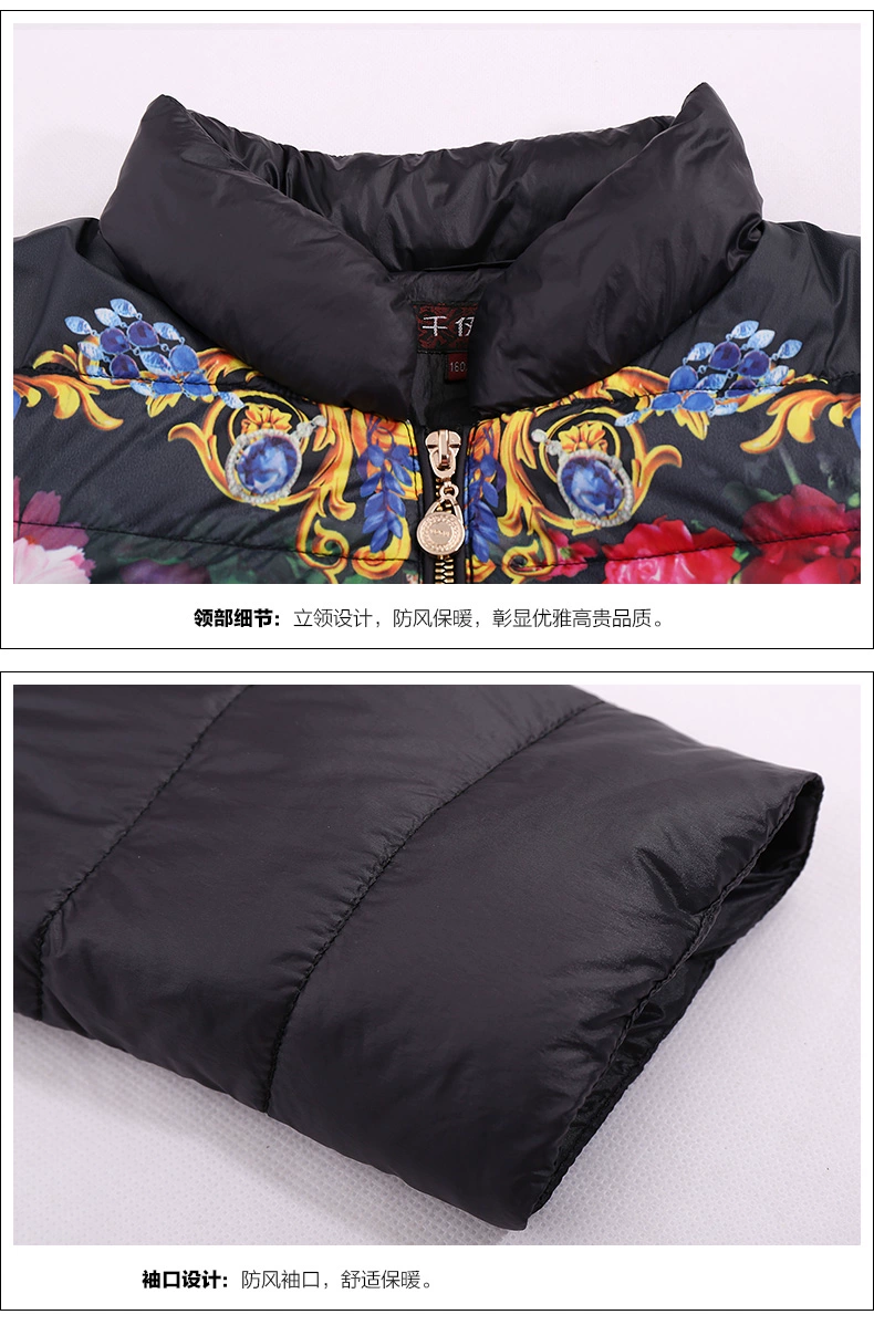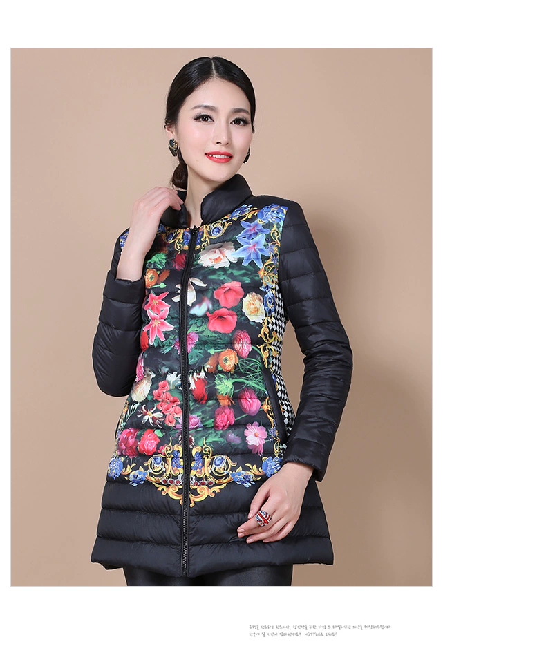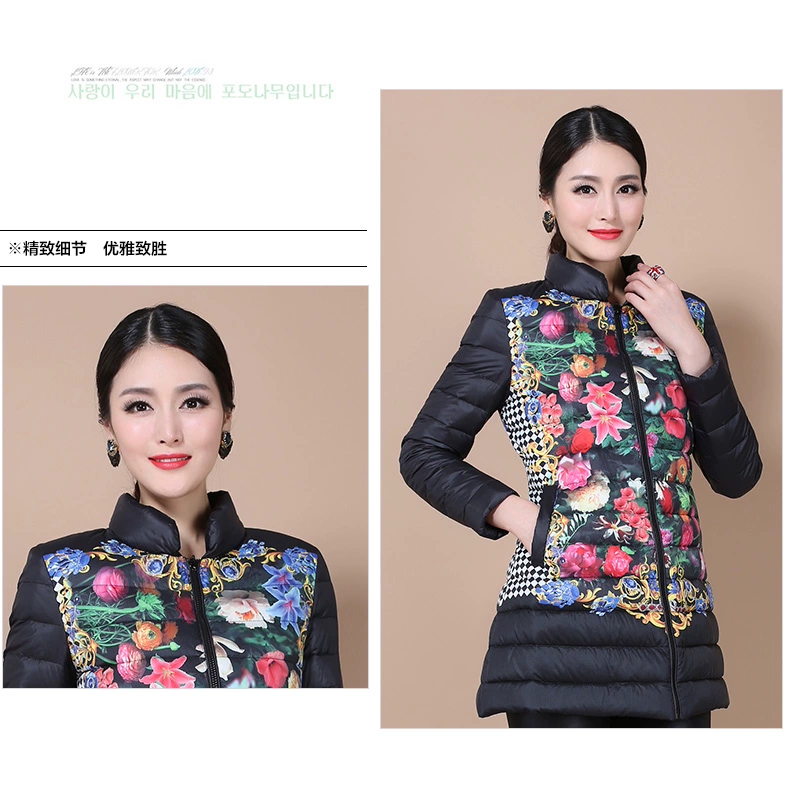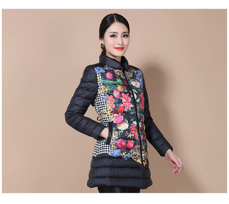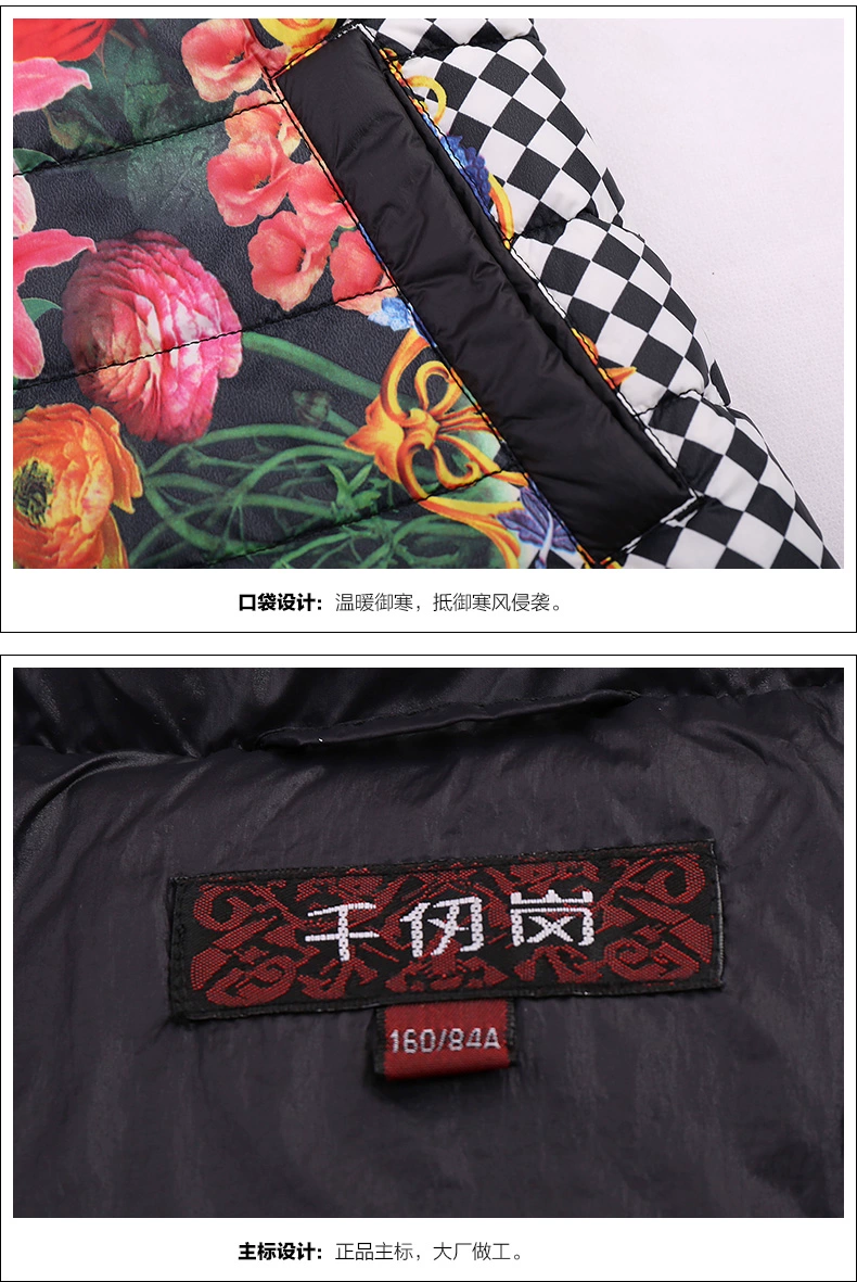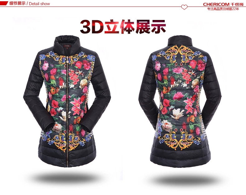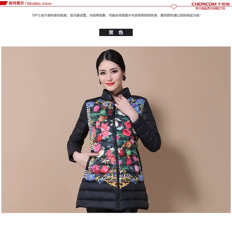 千仞岗2014新女装羽绒服 轻薄中长款花色修身显瘦19019