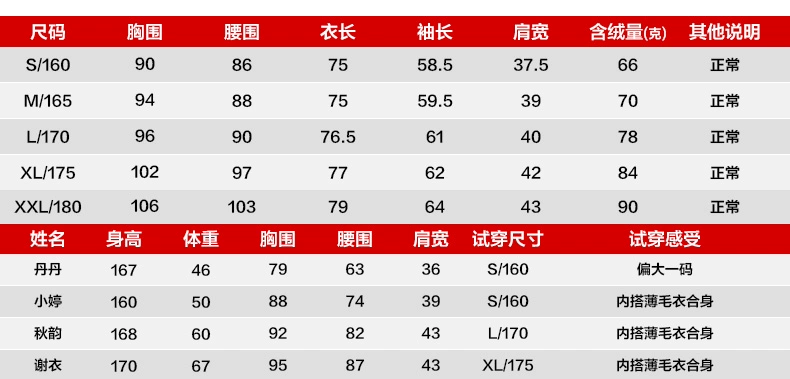 尺码: 160/S 165/M 170/L 180/XXL 1