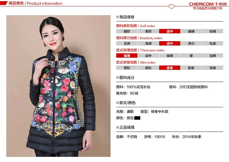 千仞岗正品2014秋冬新品女装羽绒服 轻薄中长款花色修身显瘦19019