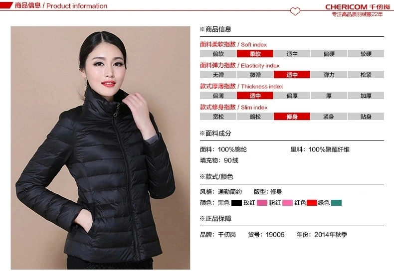 千仞岗正品2014秋冬新品女装羽绒服 轻薄纯色时尚修身显瘦19006