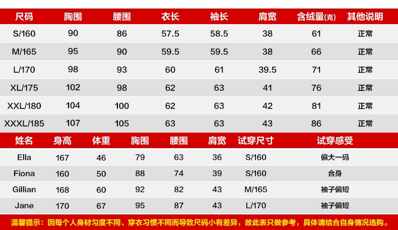尺码: 160/S 165/M 170/L 180/XXL 175