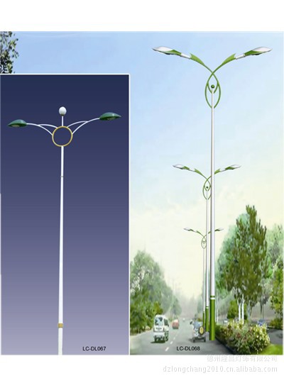 灯杆材料为圆锥形钢管,经镀锌处理后表面喷塑;灯头主体为高压压铸铝材料,经防腐处理后表面喷塑;灯体颜色及基础预埋件可按用户要求制作。欢迎询价订购