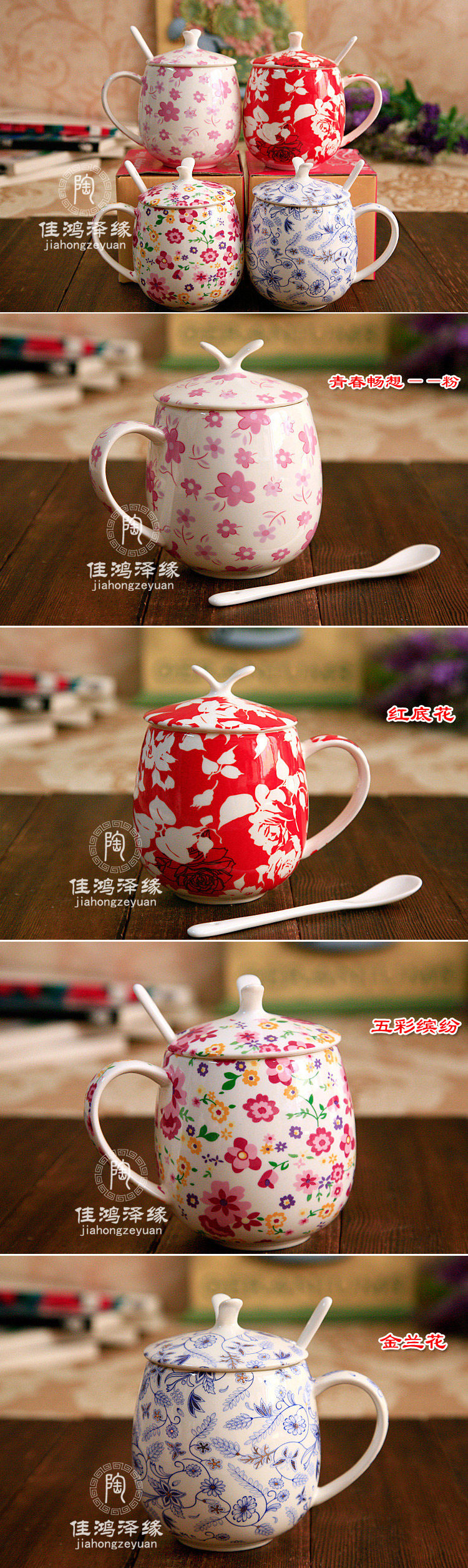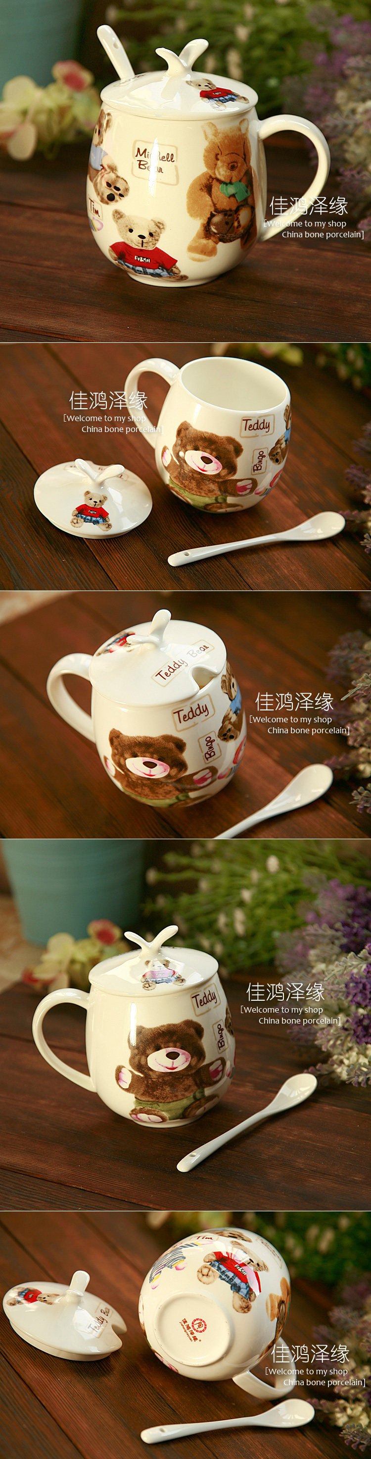 韩国创意情侣骨瓷杯 卡通可爱陶瓷水杯子 情侣杯 带盖 带勺