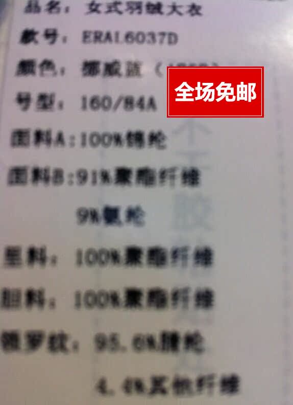 填充物: 白鸭绒91%及以上