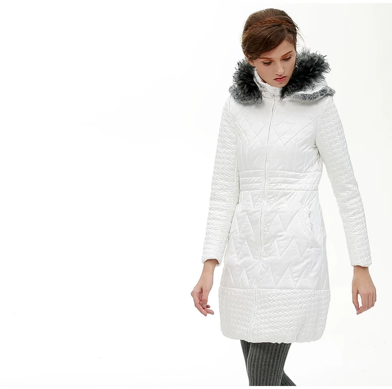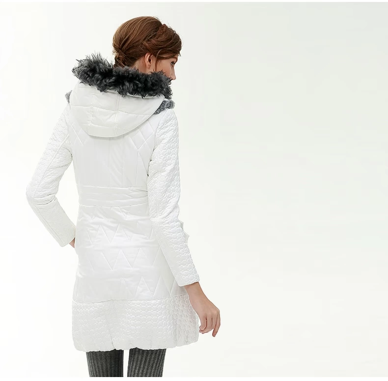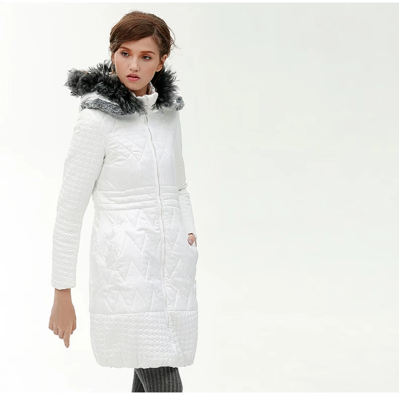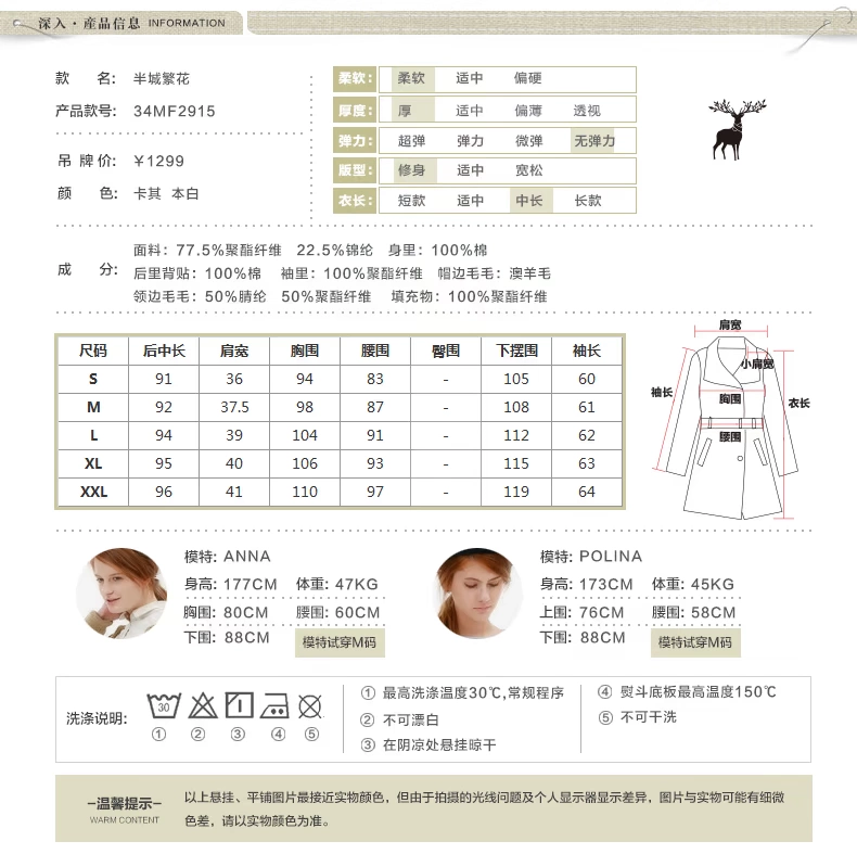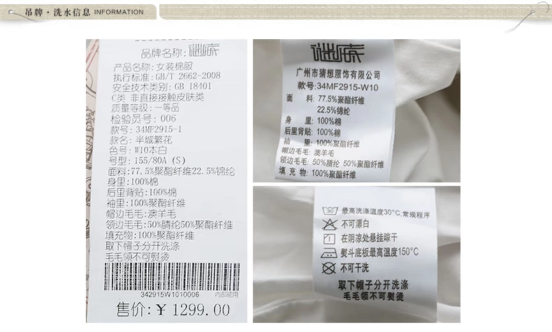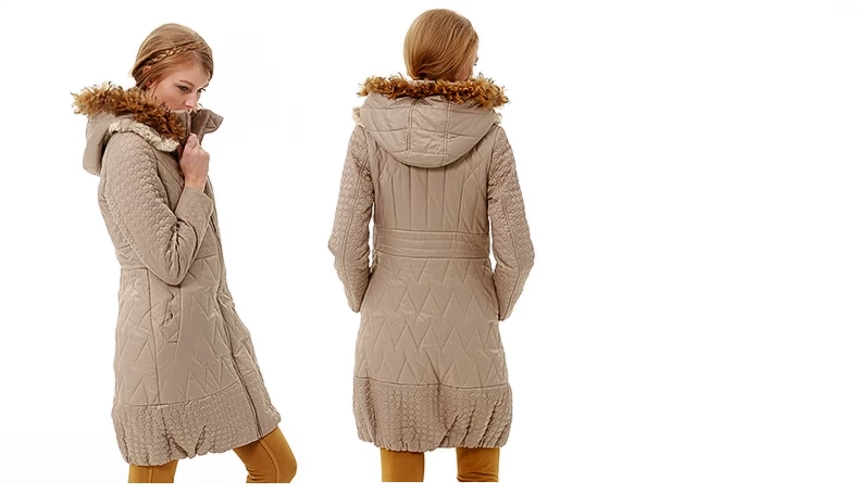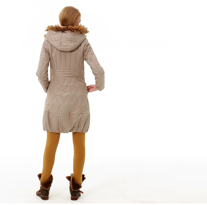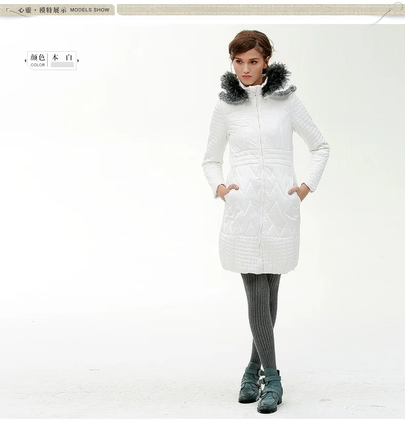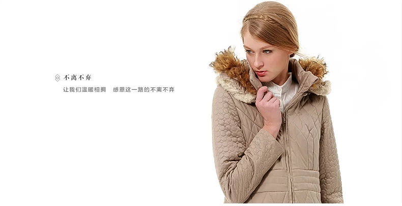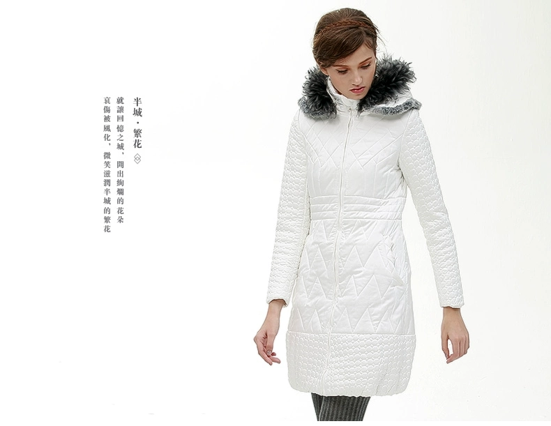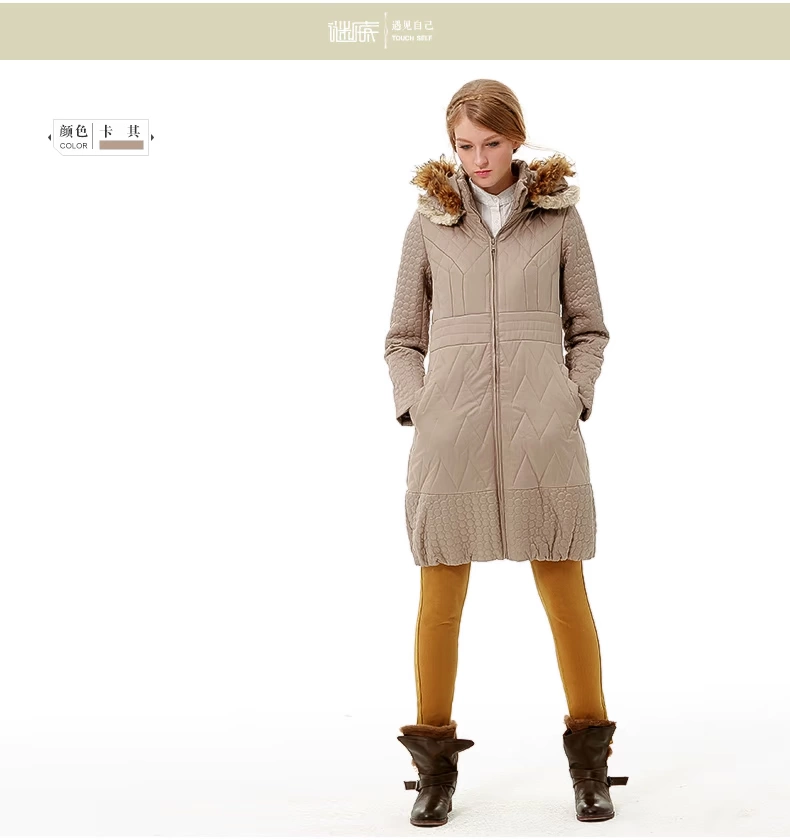 谜底2014款中长款毛领加厚棉衣女34MF2915