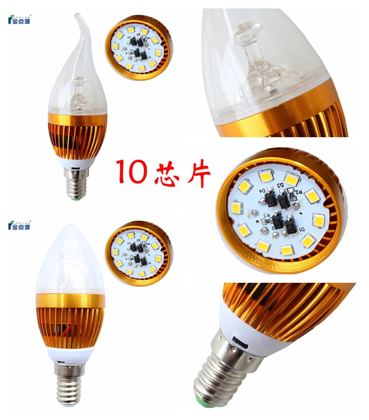 金点源LED蜡烛灯e14小螺口3w节能电灯光源3W尖泡拉尾10芯片