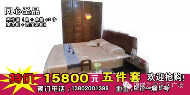 来福成家居建材城买家具建材价格实惠有保障!“福成家居建材城,您购物 我担保”是我们永恒的服务宗旨。同心圣品家具专卖店推出特价产品: