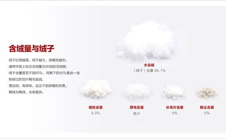 | 含绒量 | 95%鹅绒 5%羽毛 |
