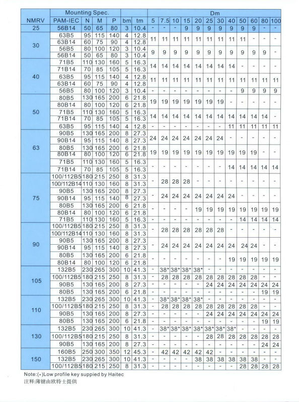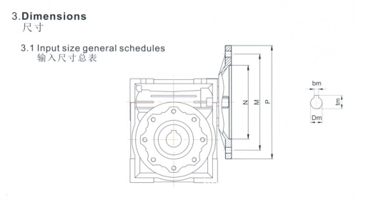 四、NMRV型微型蜗轮蜗杆减速器输入尺寸总表