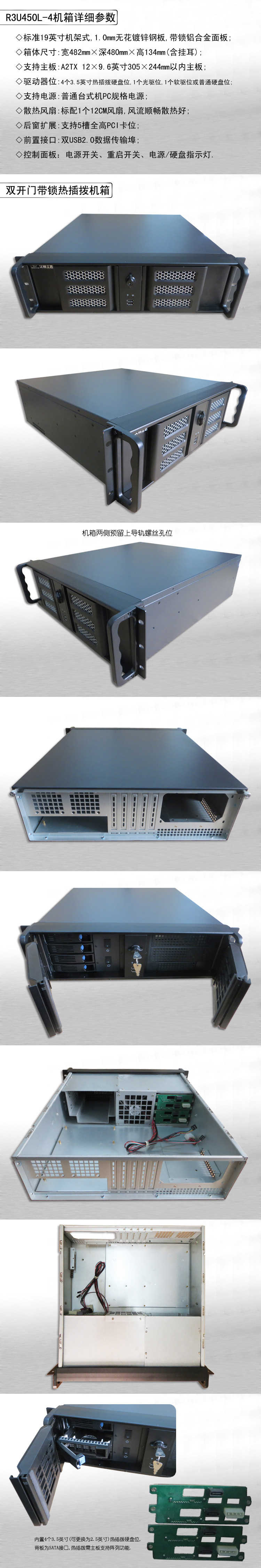 R3U450L4热插拔硬盘ATX主板PC电源工控服务器双开门带锁机箱