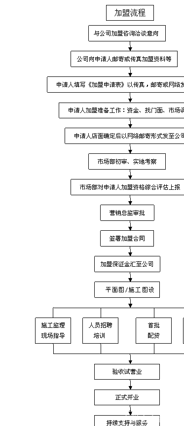·运营管理、注重实效:总部实行定期市场巡察制度,与加盟商保持密切的沟通,共同解决随时出现的相关问题,提高加盟店的核心竞争力;并享受总部内部刊物的定期交流。