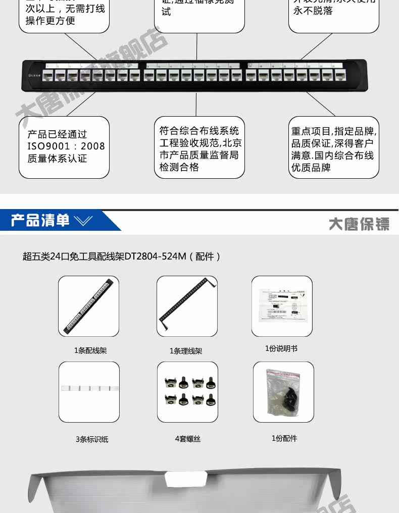 包邮 大唐保镖 大唐 超5类 配线架 24口 免打 超五类 网络配线架