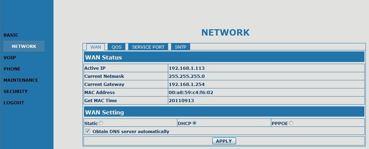 | WAN | 10/100Base- T RJ-45 for LAN |