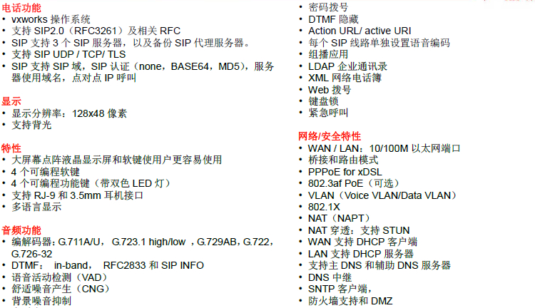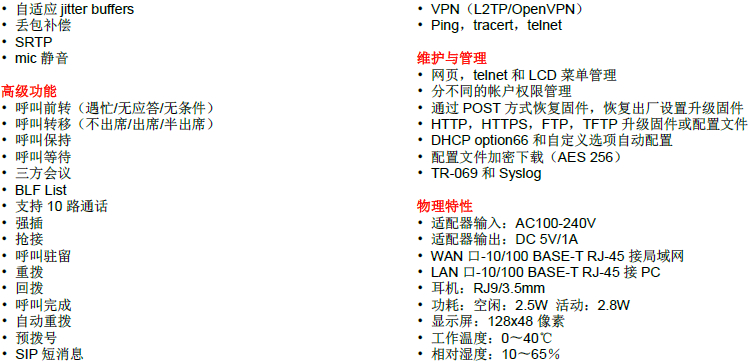 - SIP application: support call forward/ transfer (blind/attended)/ holding/ waiting/ 3 way talking/ conference/ paging and intercom/ call park/call pickup/ join call/click to dial/ secondary dialing automatically