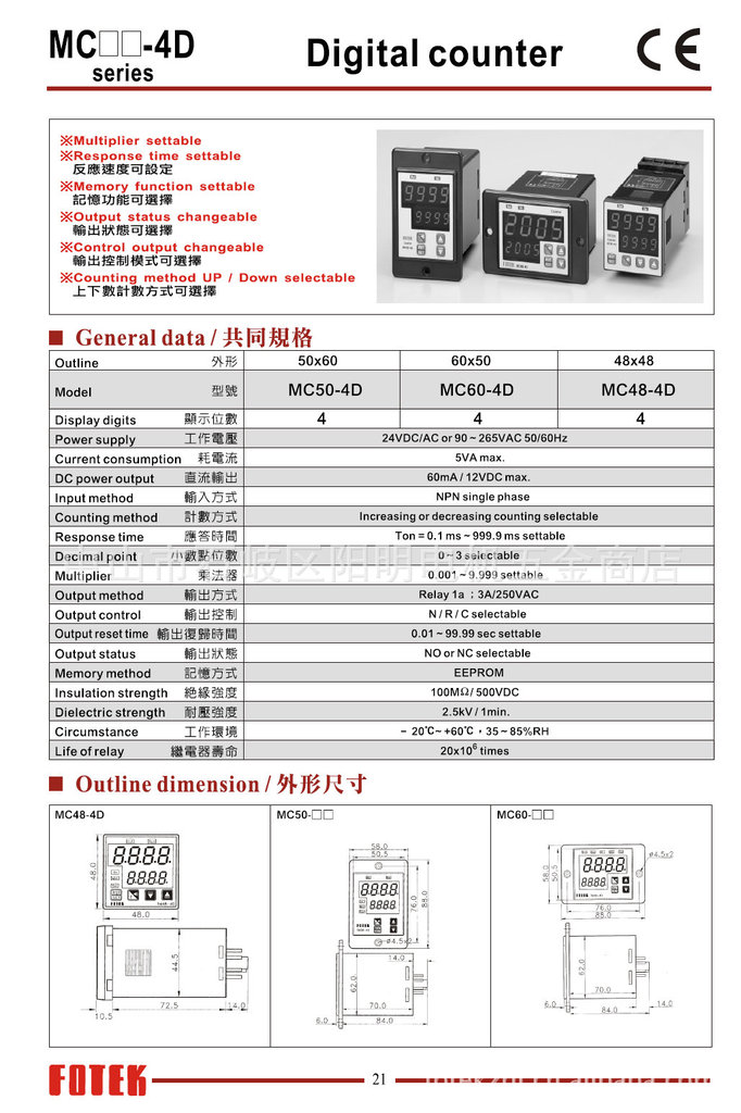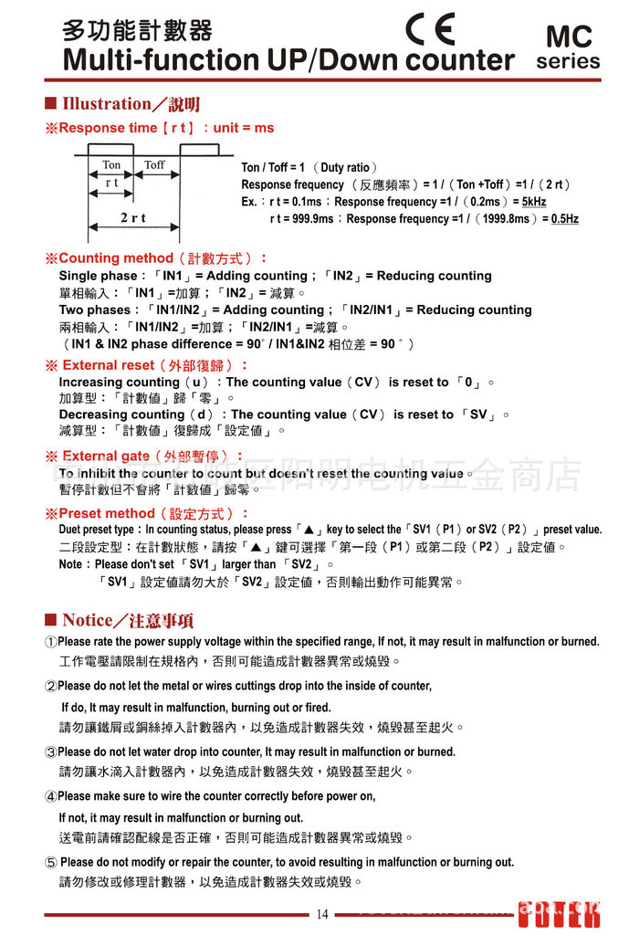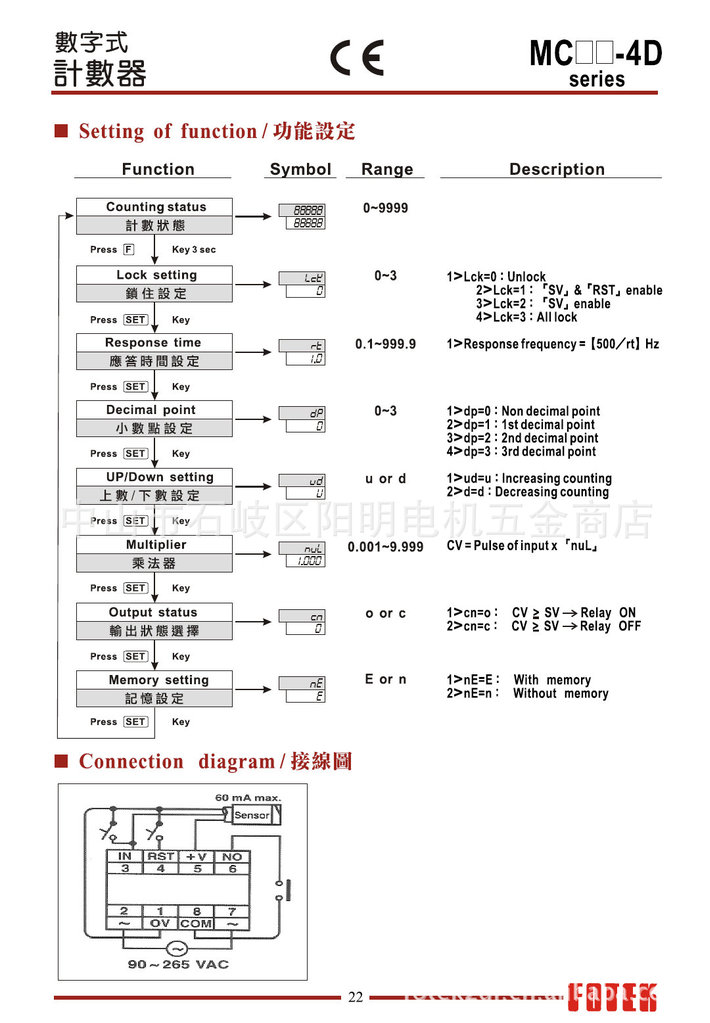 供应台湾阳明FOTEK全系列高频率20KHZ计数器