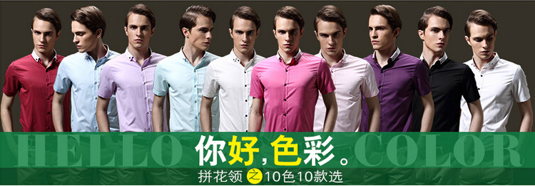 仪可儿2014夏季新品短袖衬衫男士衬衣韩版时尚修身商务休闲潮流