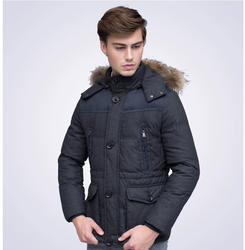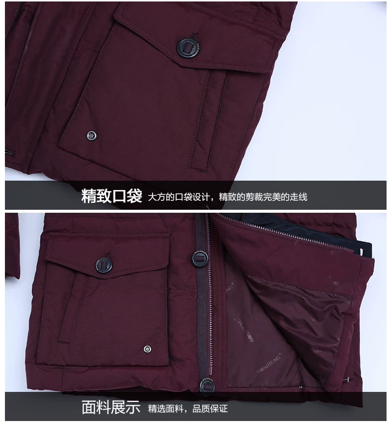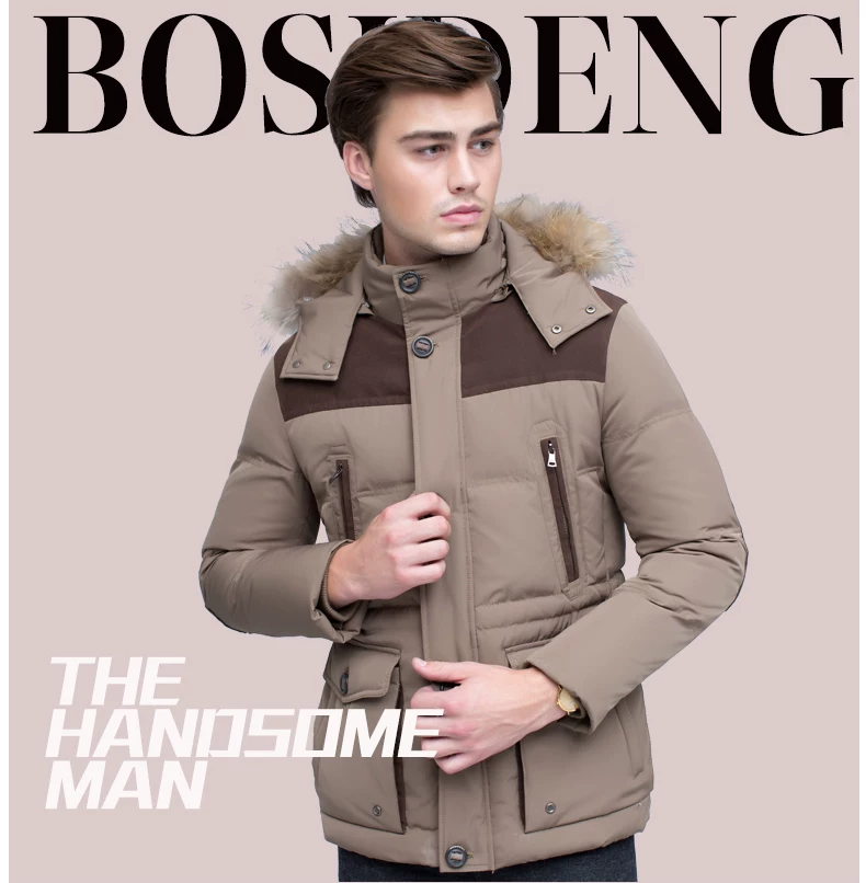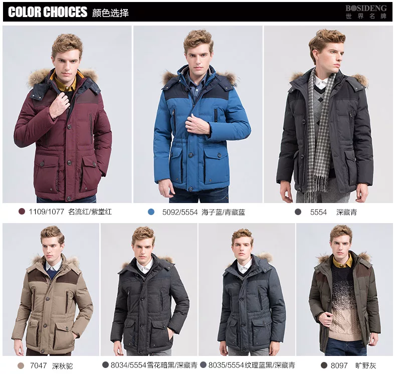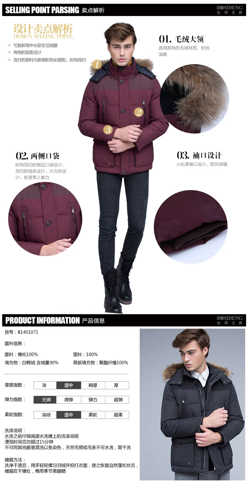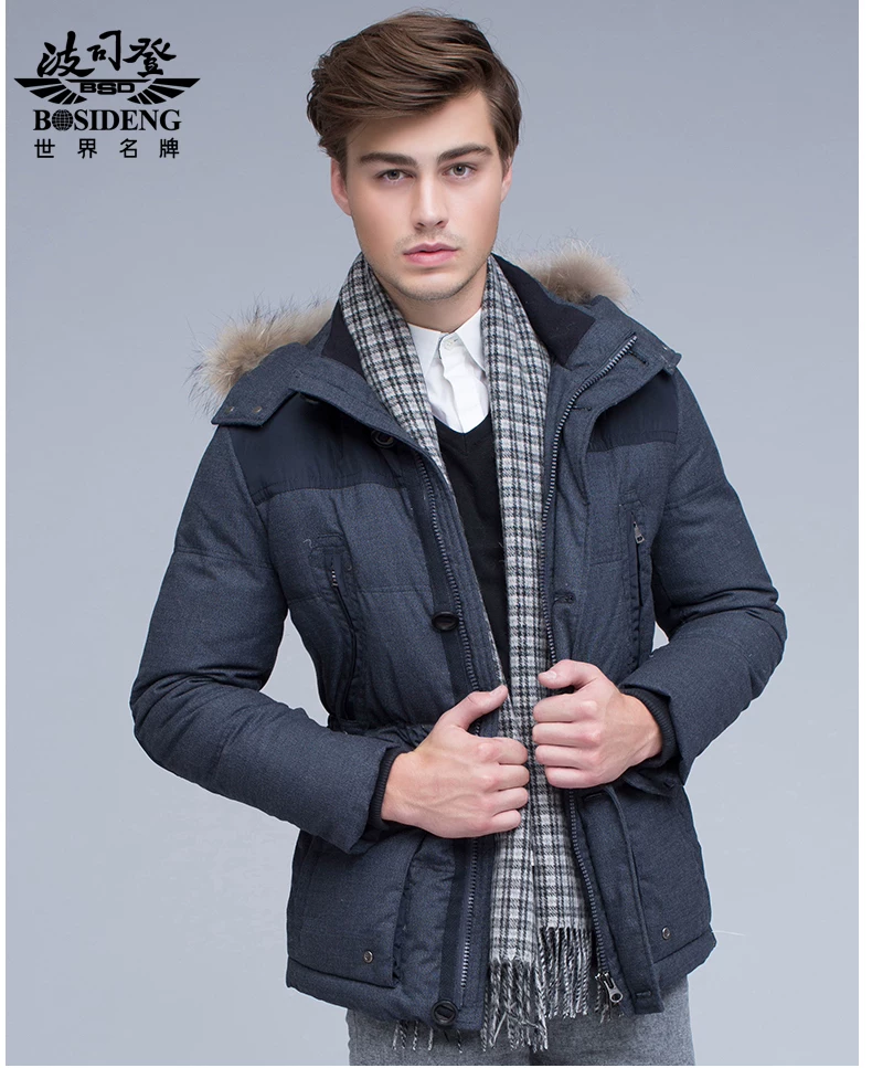 14年款波司登羽绒服男脱卸帽加厚多口袋休闲款B1401071