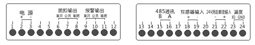 注、电源输入无极性 互感器输入无极性。 通讯及消防联动应按照说明标示连接