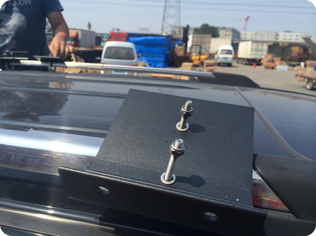 【安装】配有4个U型固定扣,固定扣带硅胶管,可固定在拓乐、酷客及大多数国产车顶架横杆上