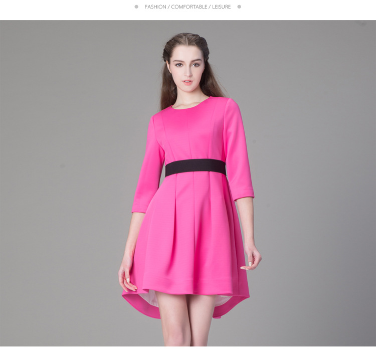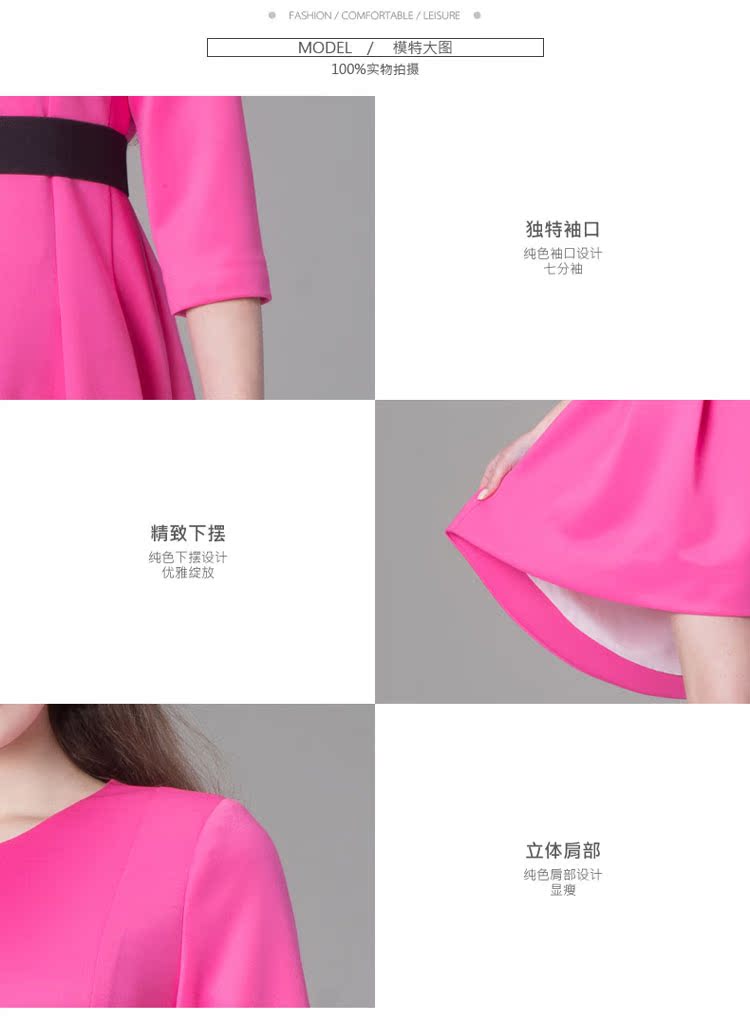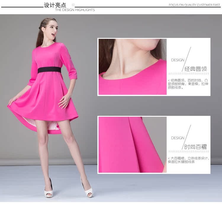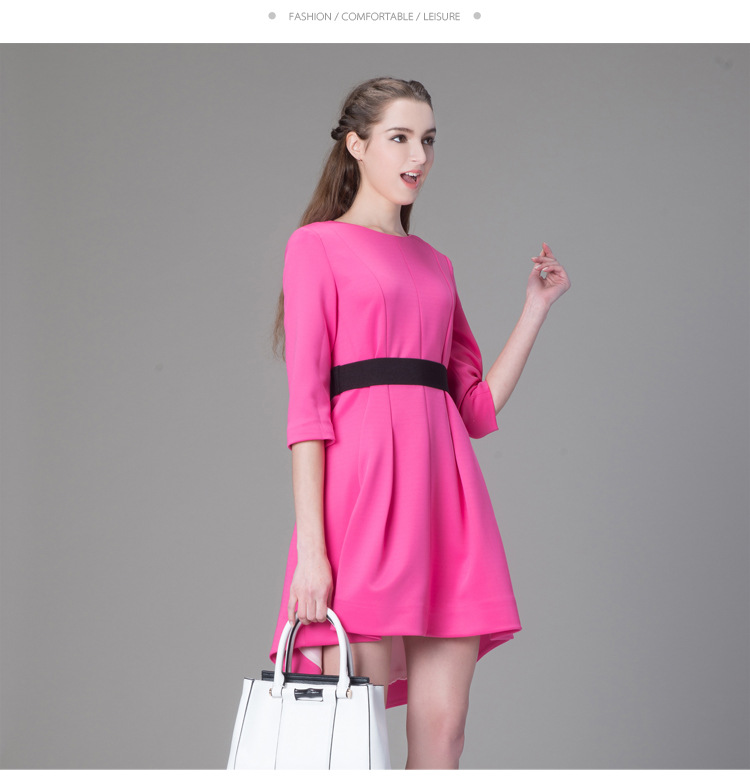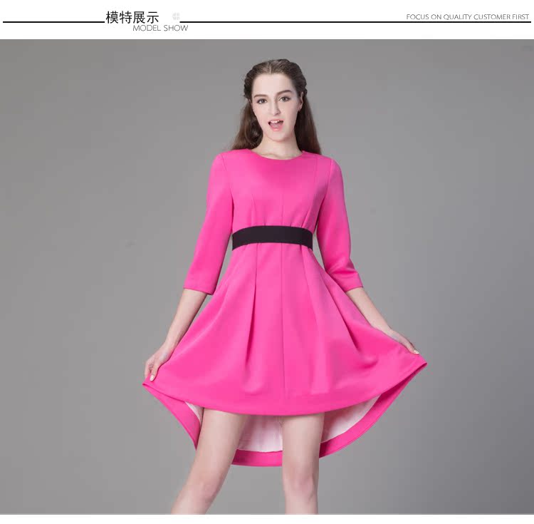 海嘉仕2015春装欧洲站连衣裙七分袖中长款大摆型连衣裙