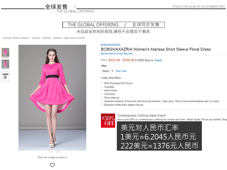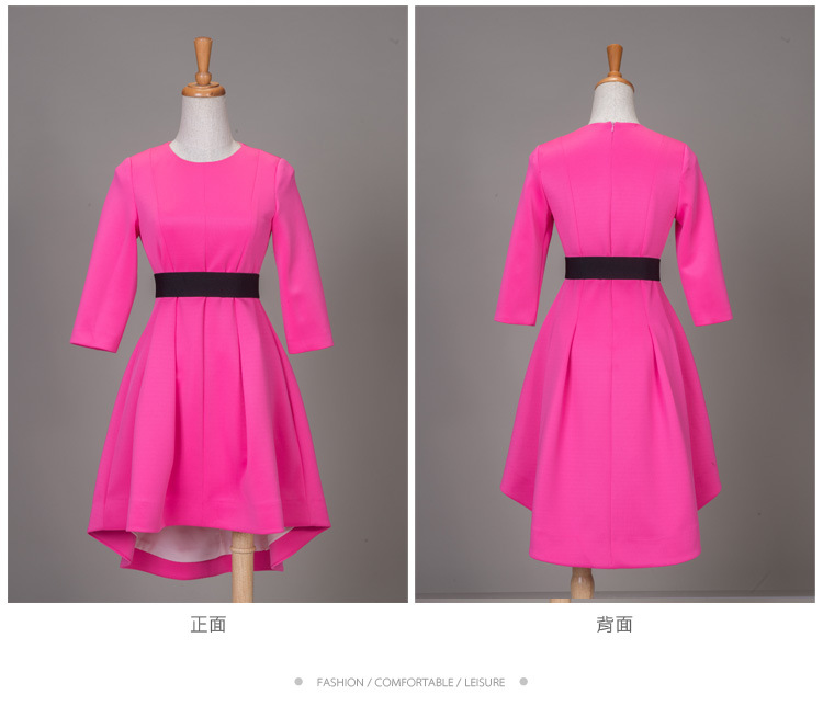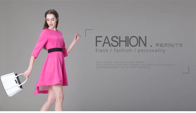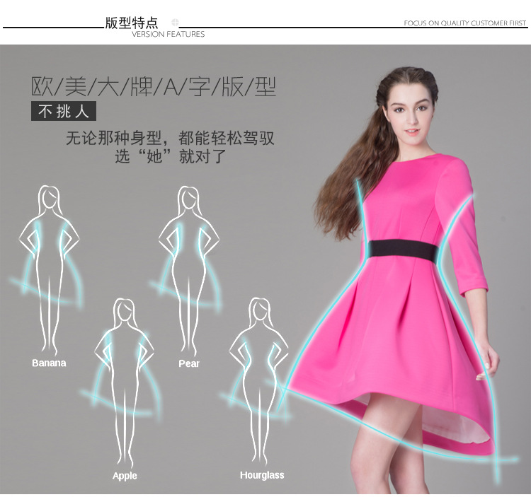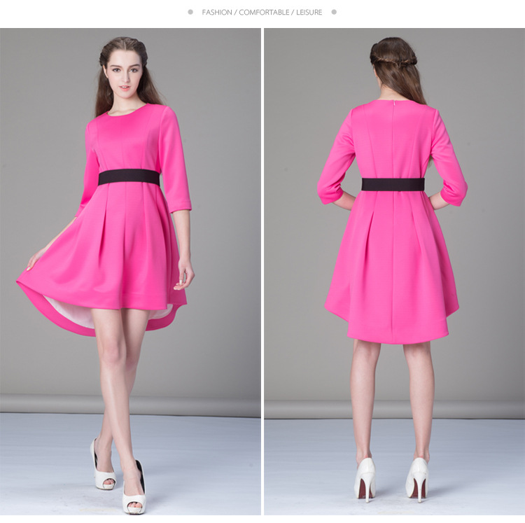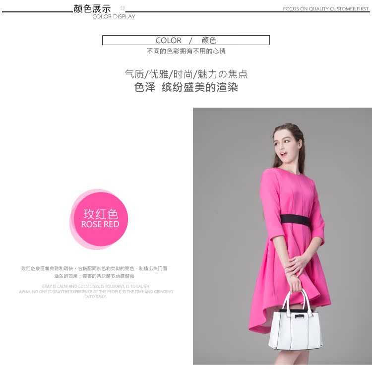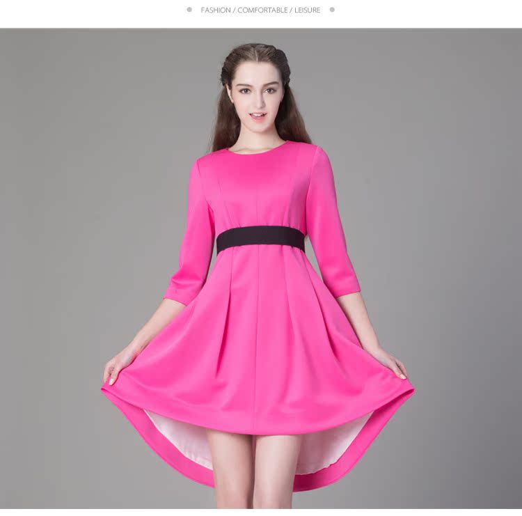 海嘉仕2015春装欧洲站连衣裙七分袖中长款大摆型连衣裙
