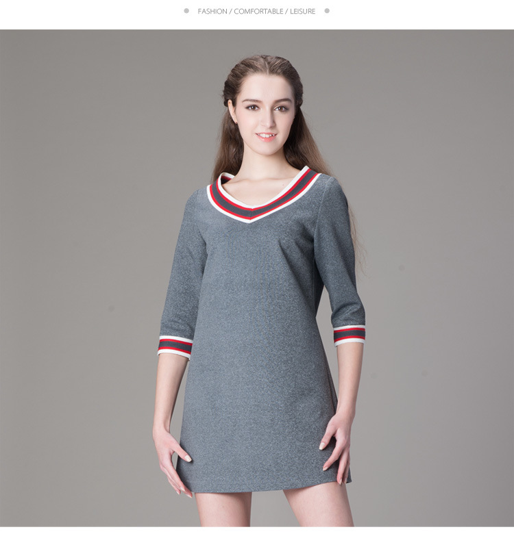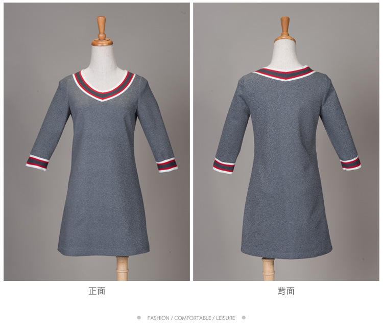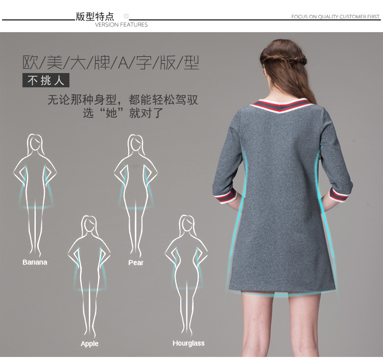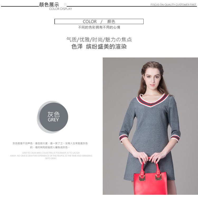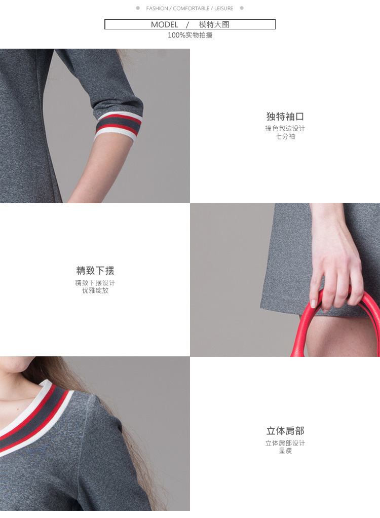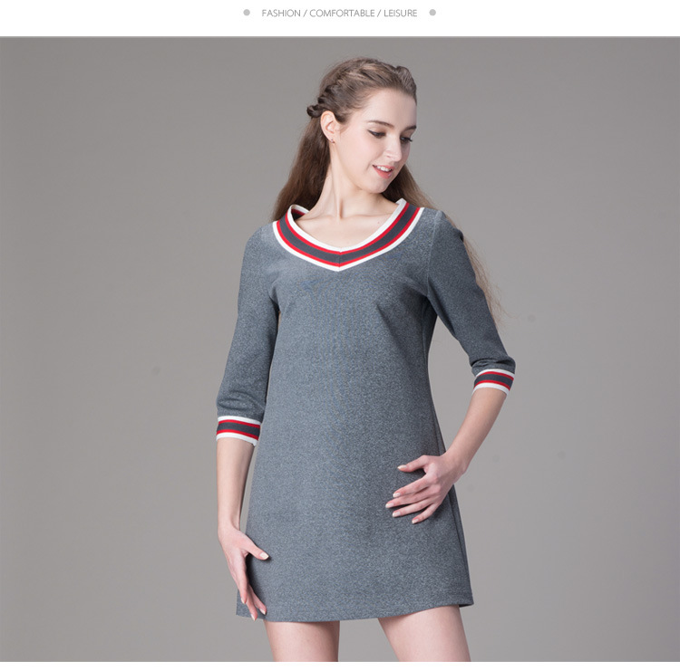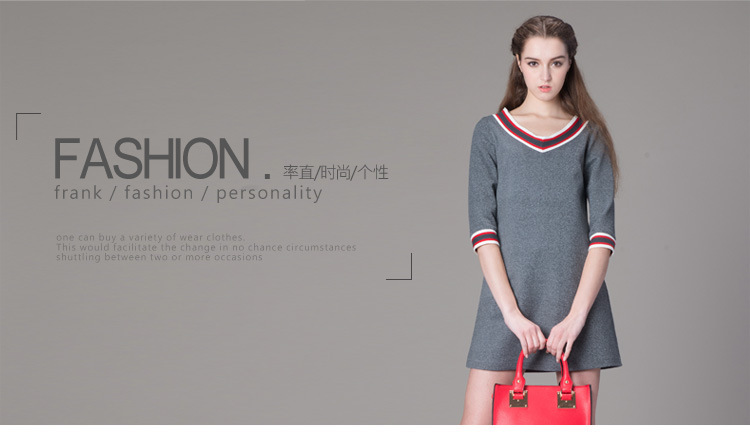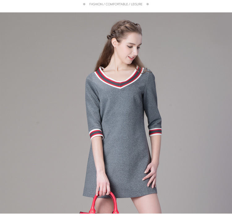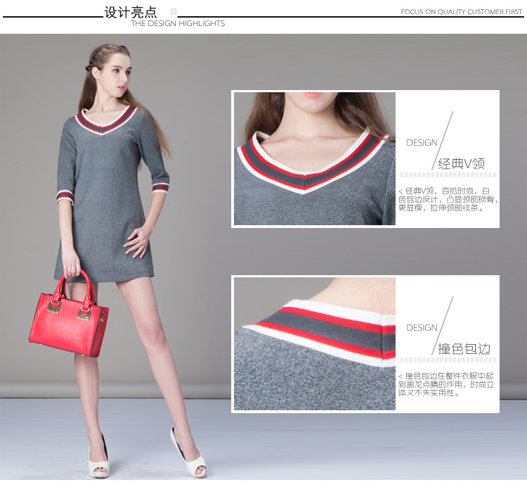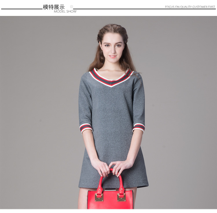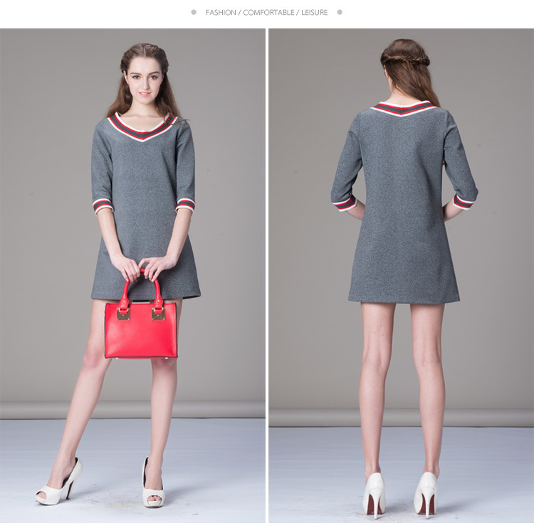 海嘉仕欧洲站品牌连衣裙撞色五分袖V领宽松型A字裙2015春装